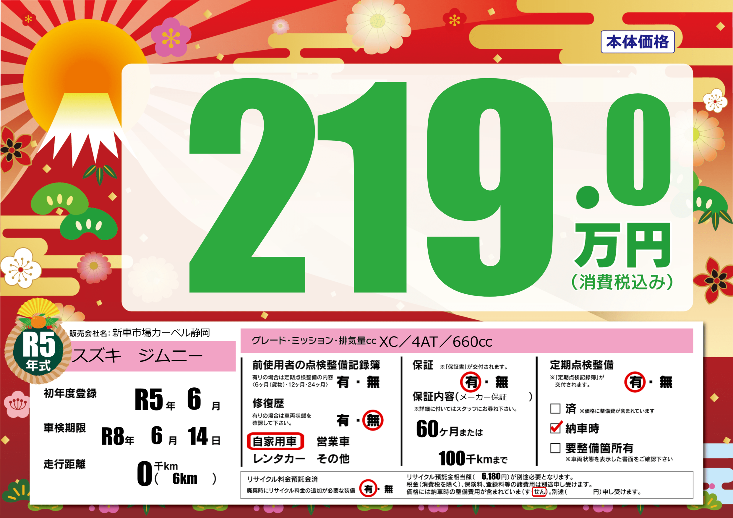 | 走行キロ | - | 初年度登録 | R5年6月 |