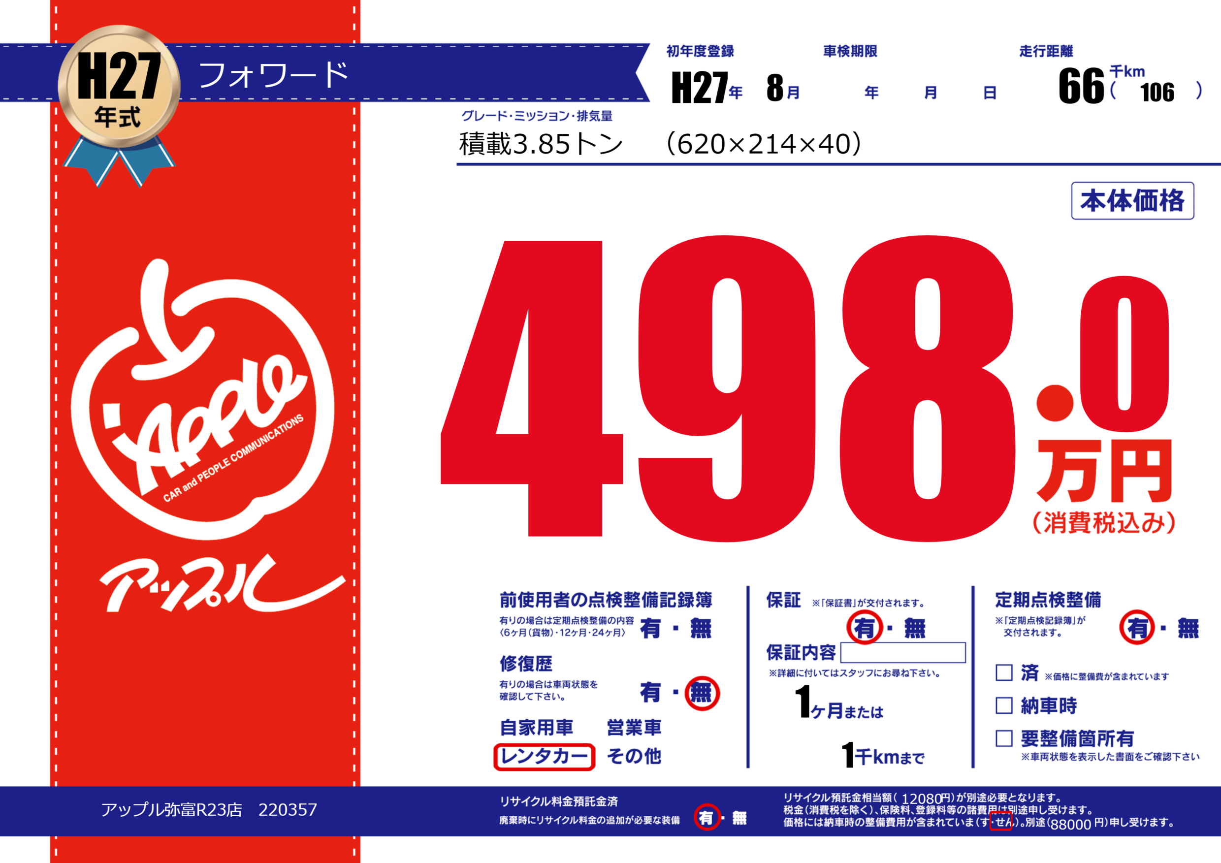 | 車名 | フォワード | グレード ミッション 排気量 |