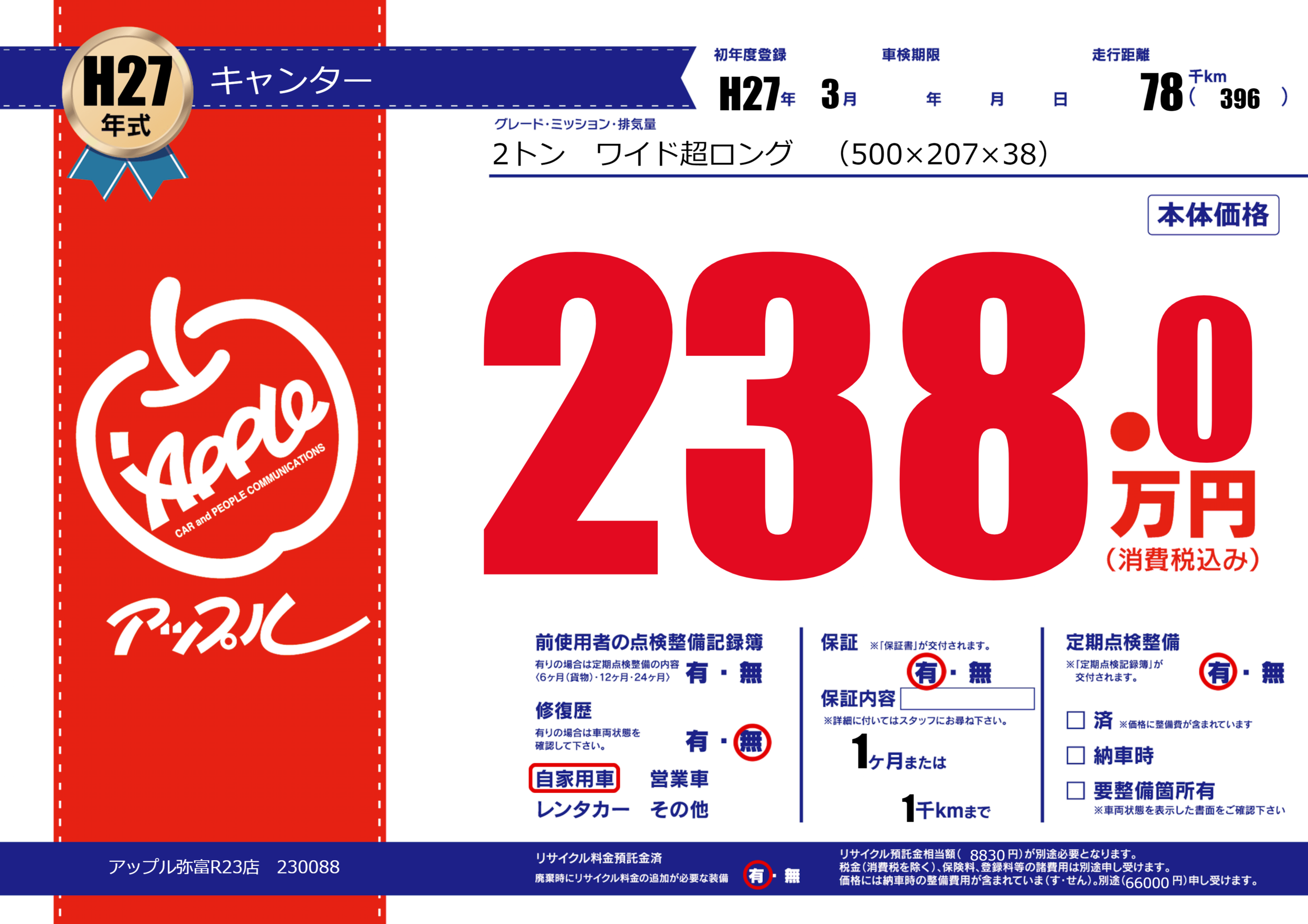| 車名 | キャンター | グレード ミッション 排気量 |