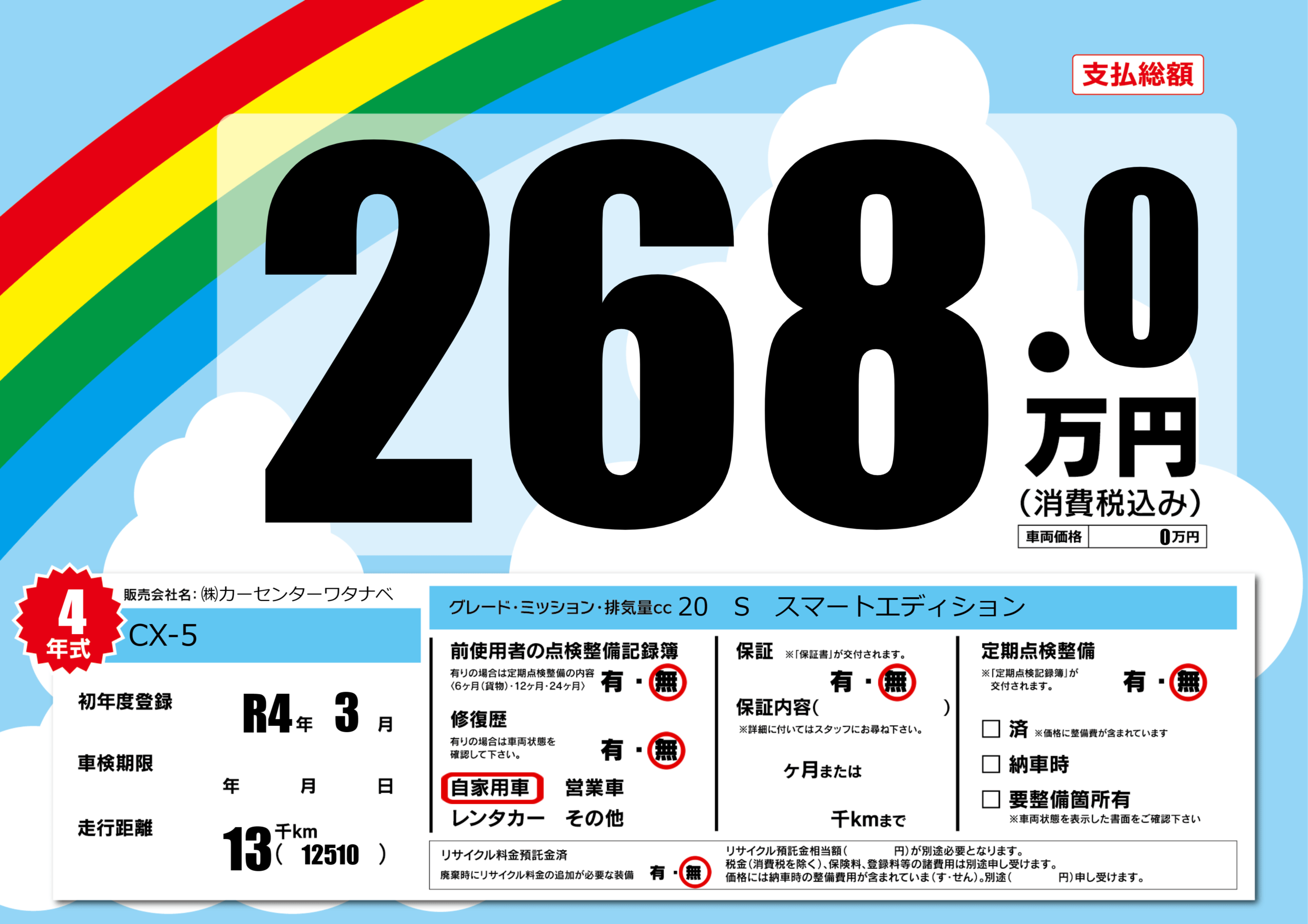 | 車検制限 | - 年 - 月 - 日 | ||