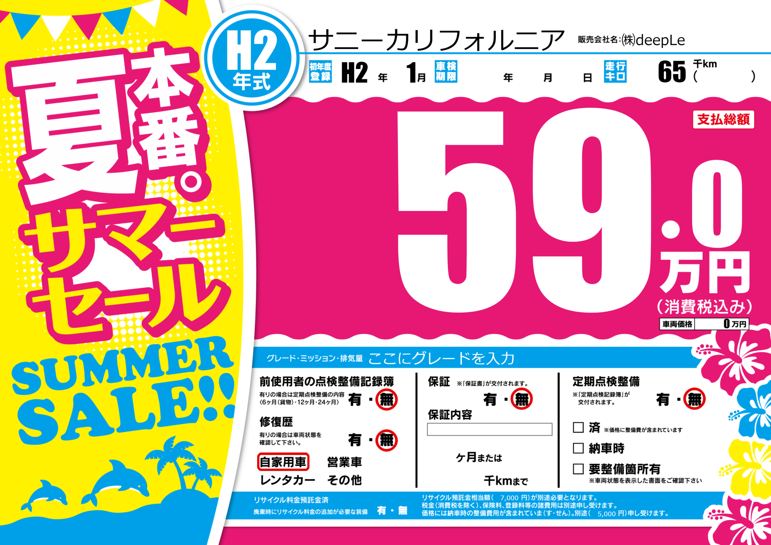 | 走行キロ | 6.5万km | 初年度登録 | H2年1月 |