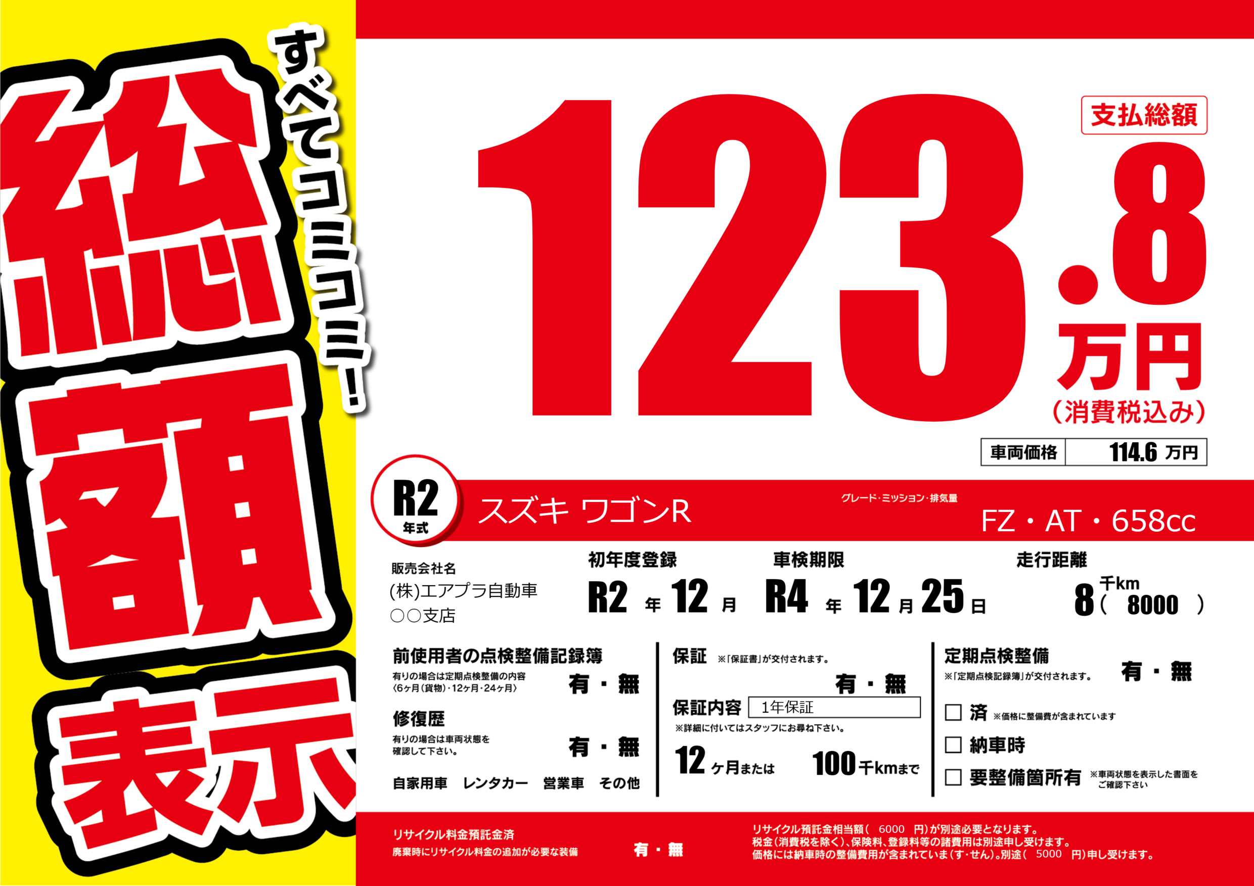 保証なし 保証内容(1年保証) 12ヶ月または(100)千kmまで |