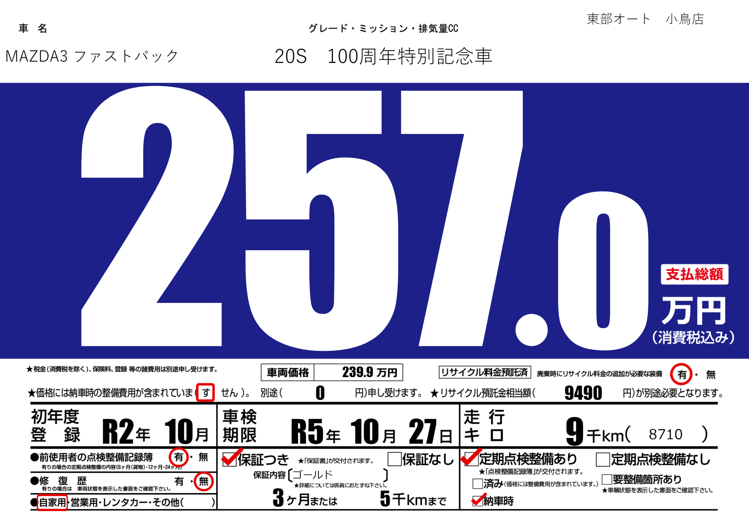 保証付き 保証内容(ゴールド) 3ヶ月または(5)千kmまで |