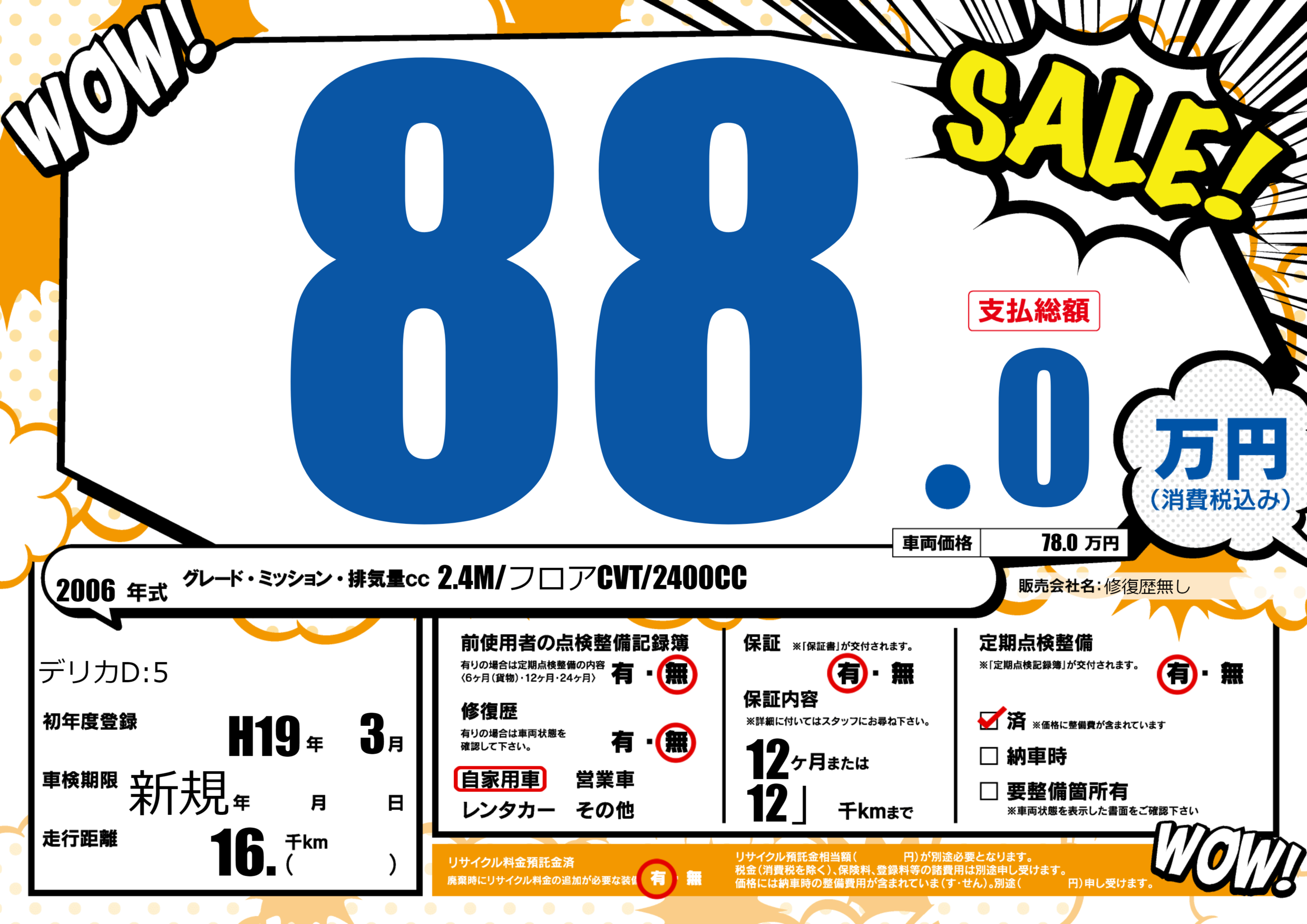 | 定期点検整備 | 定期点検整備あり 定期点検整備済み | ||