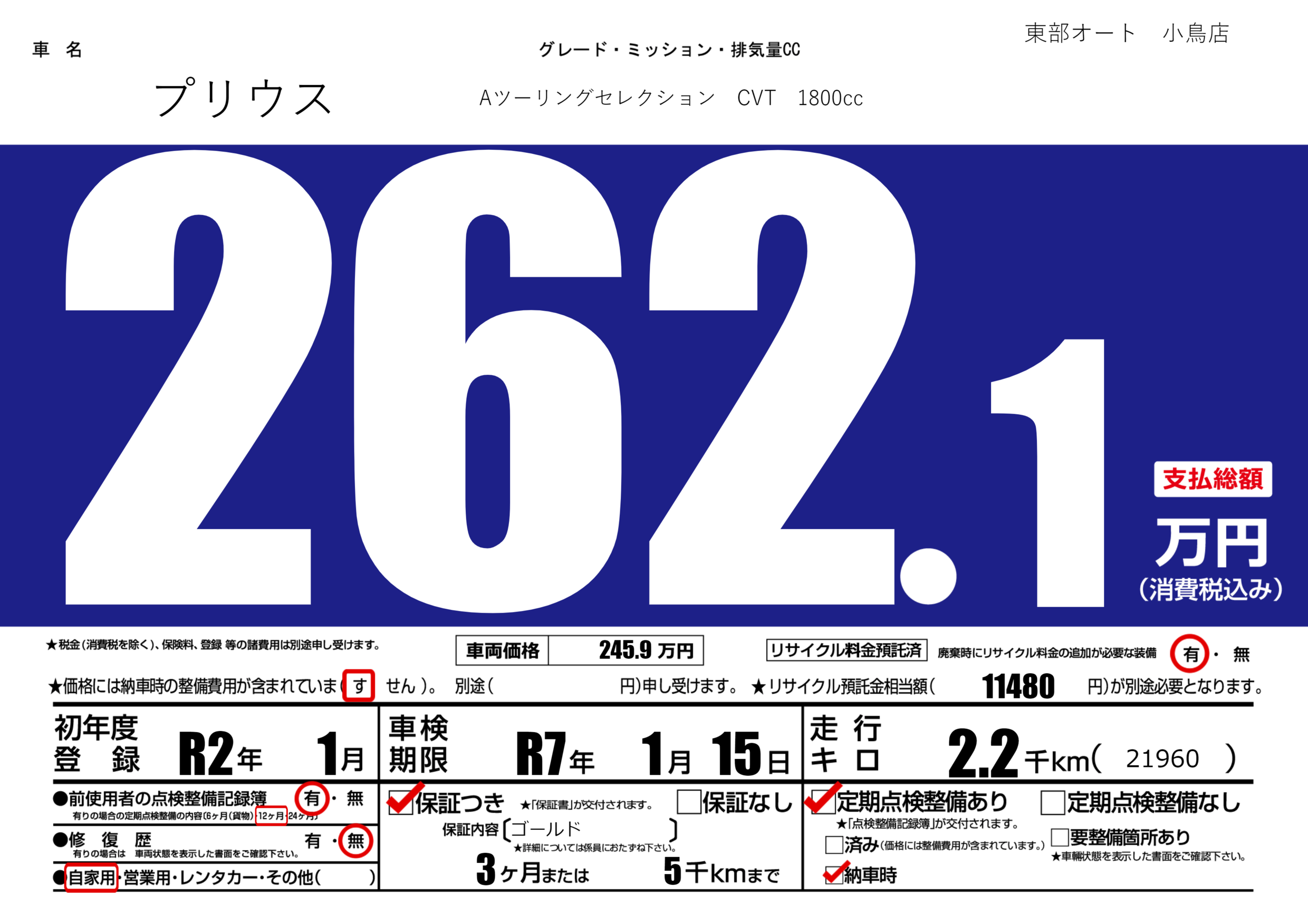 保証付き 保証内容(ゴールド) 3ヶ月または(5)千kmまで |