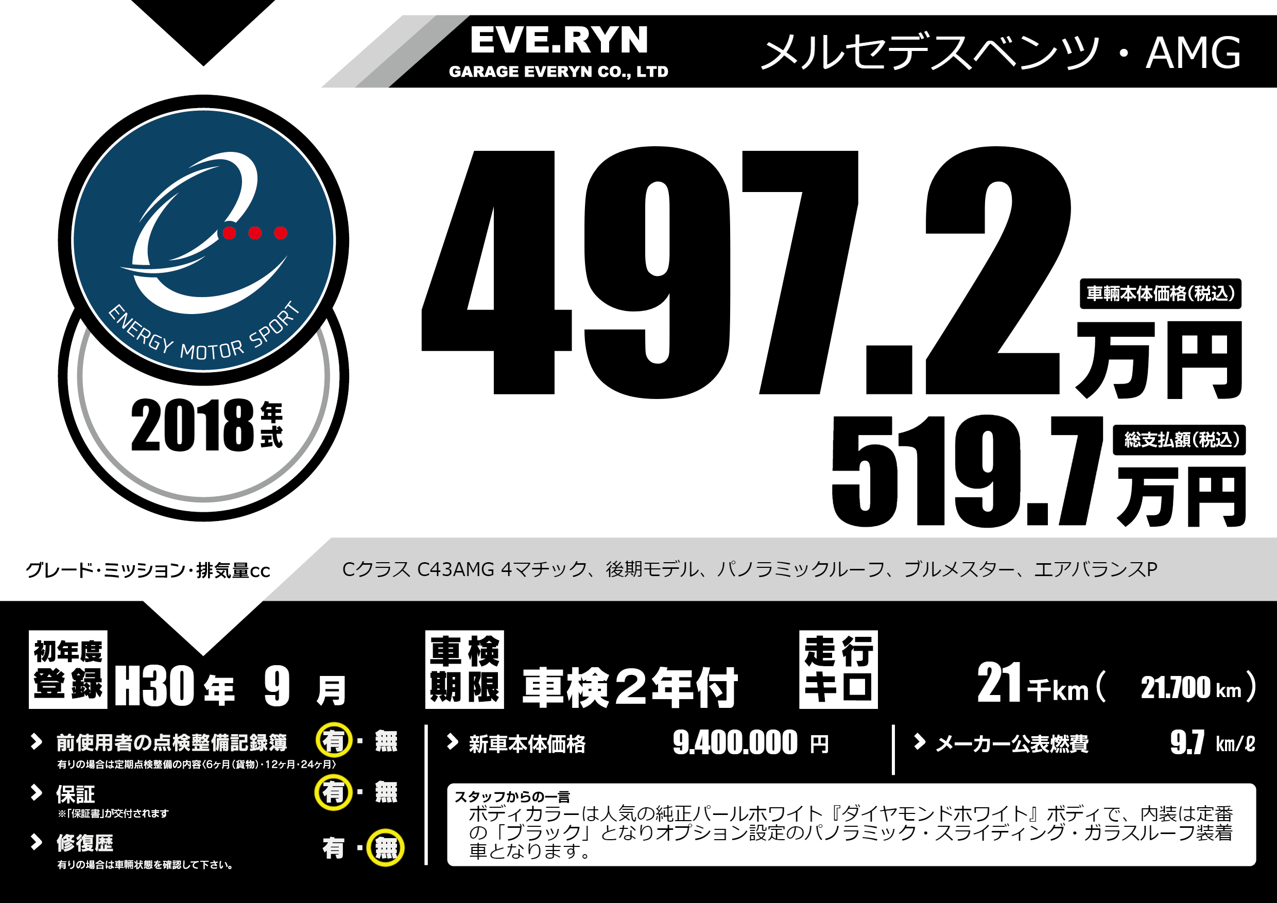 | 車名 | メルセデスベンツ・AMG | グレード ミッション 排気量 |