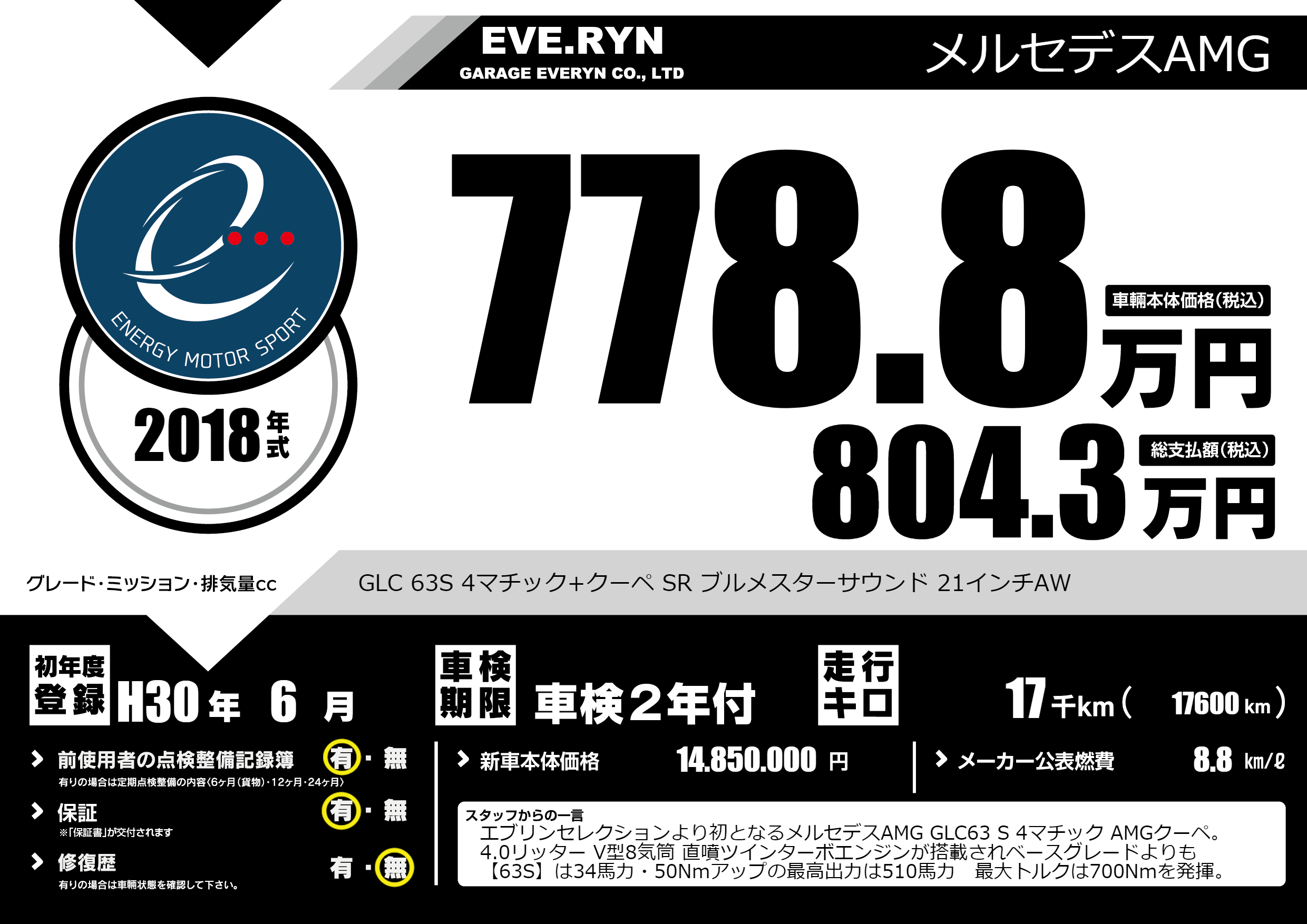 GLC 63S 4マチック+クーペ SR ブルメスターサウンド 21インチAW |