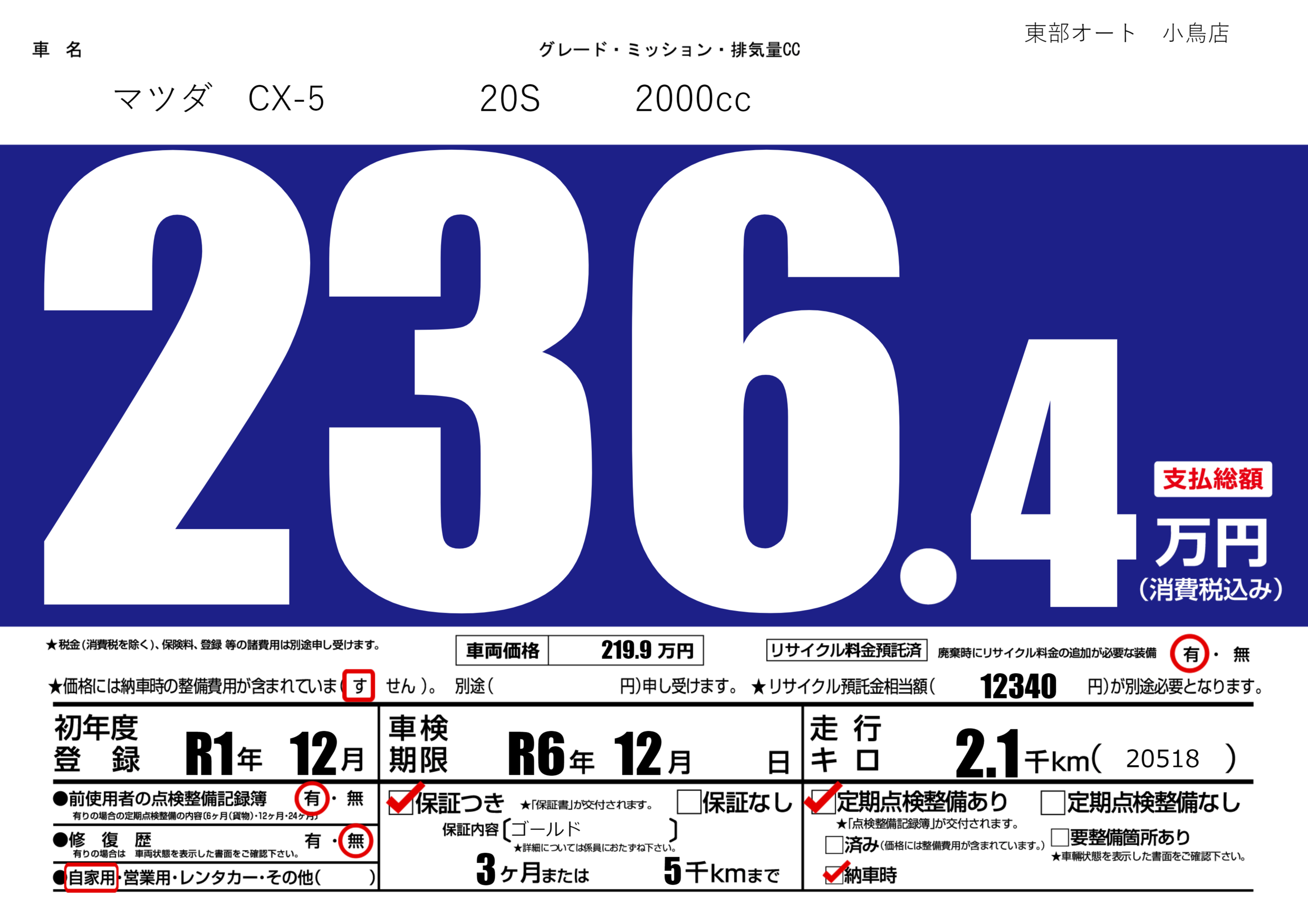 保証付き 保証内容(ゴールド) 3ヶ月または(5)千kmまで |