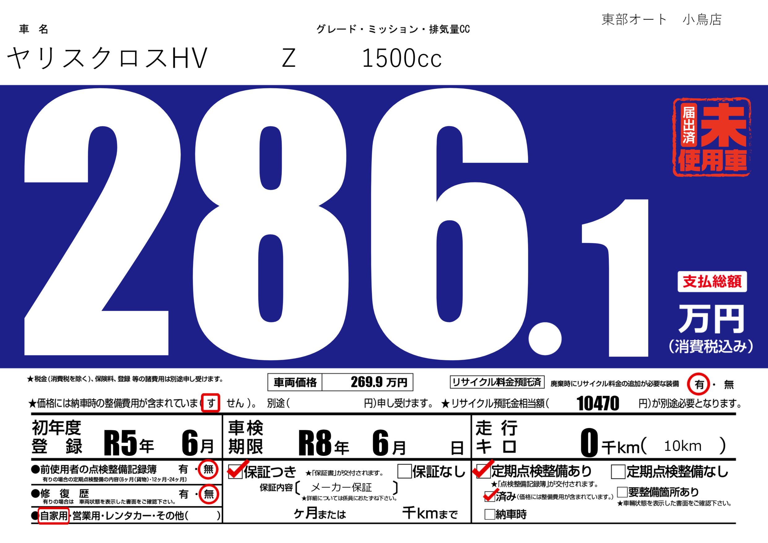 | 車名 | ヤリスクロスHV | グレード ミッション 排気量 |