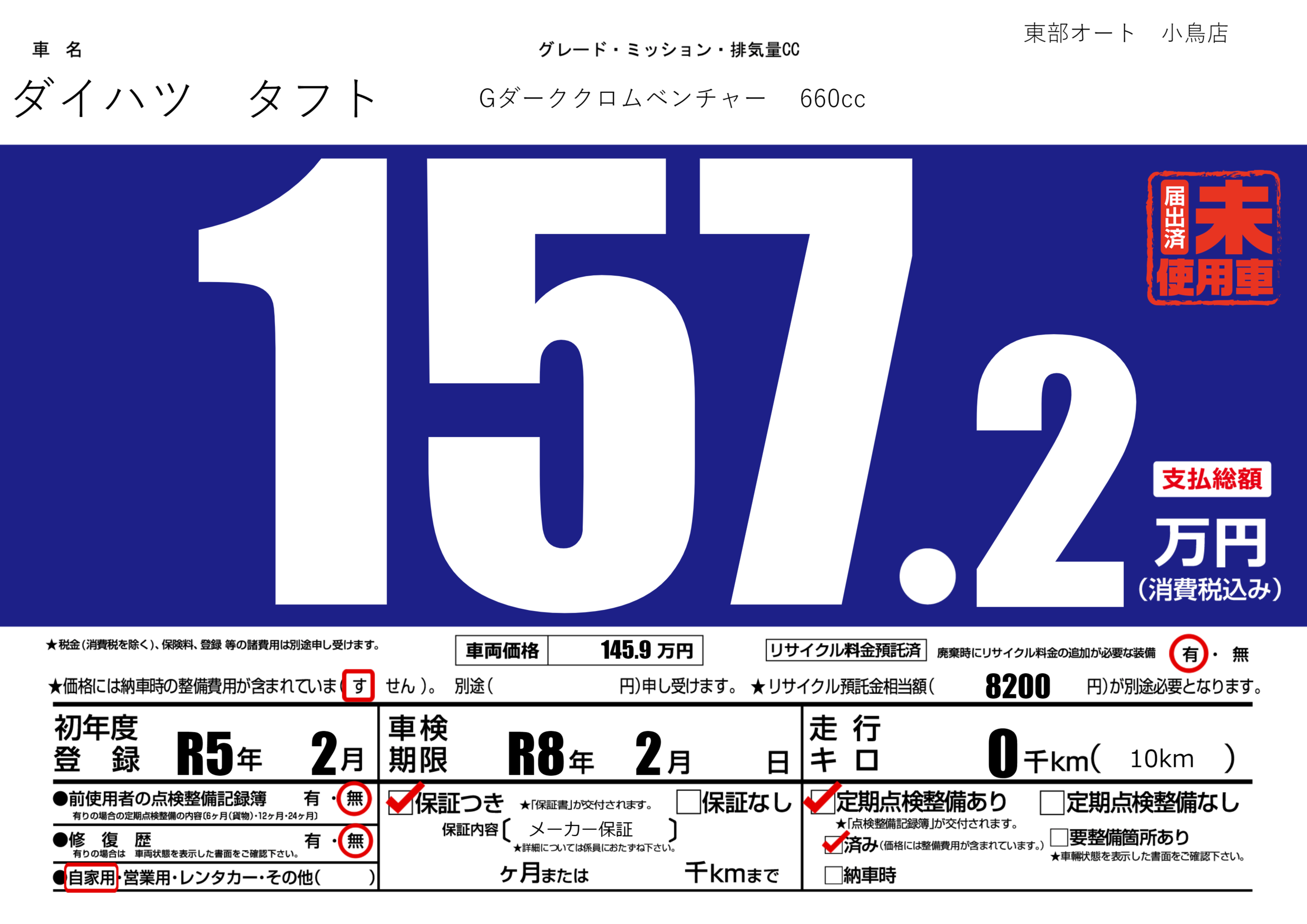 | 定期点検整備 | 定期点検整備あり 定期点検整備済み | ||