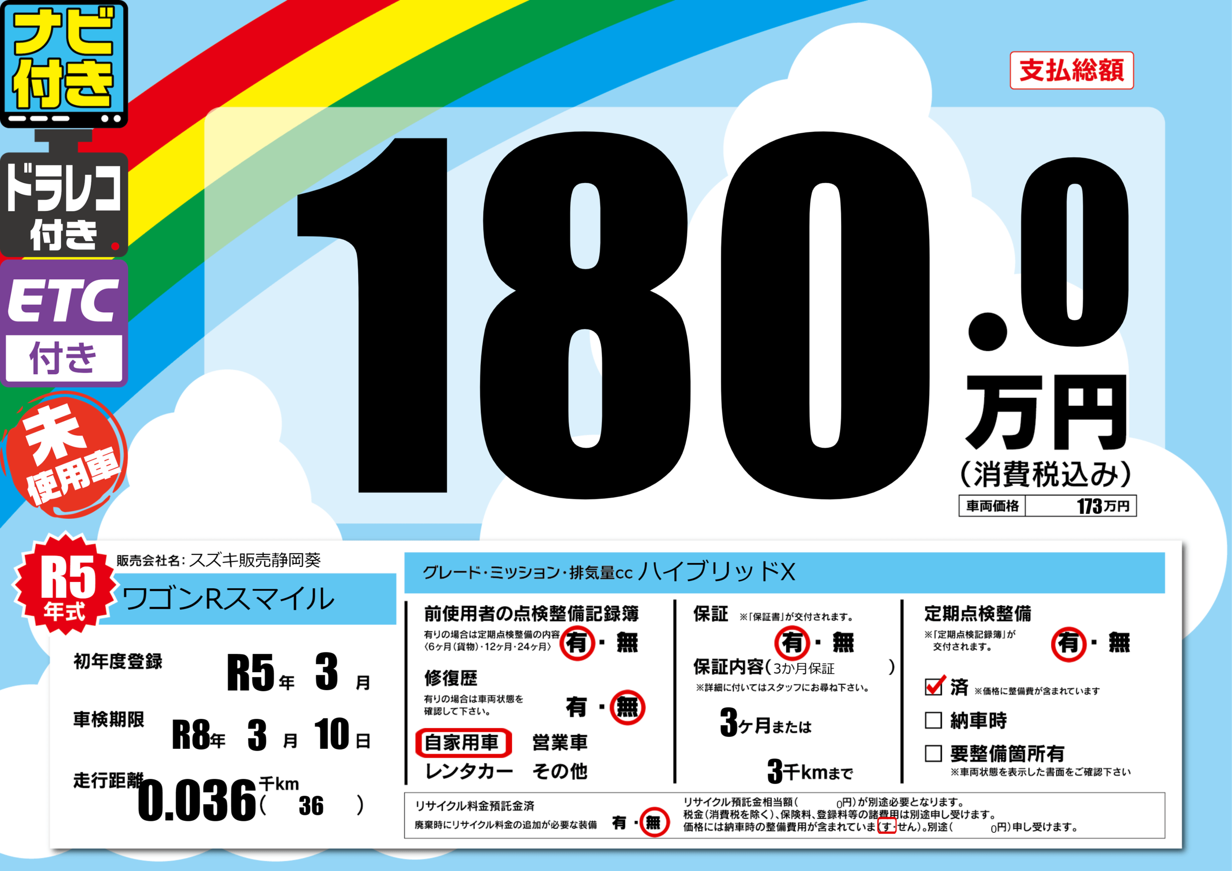 | 車名 | ワゴンRスマイル | グレード ミッション 排気量 |