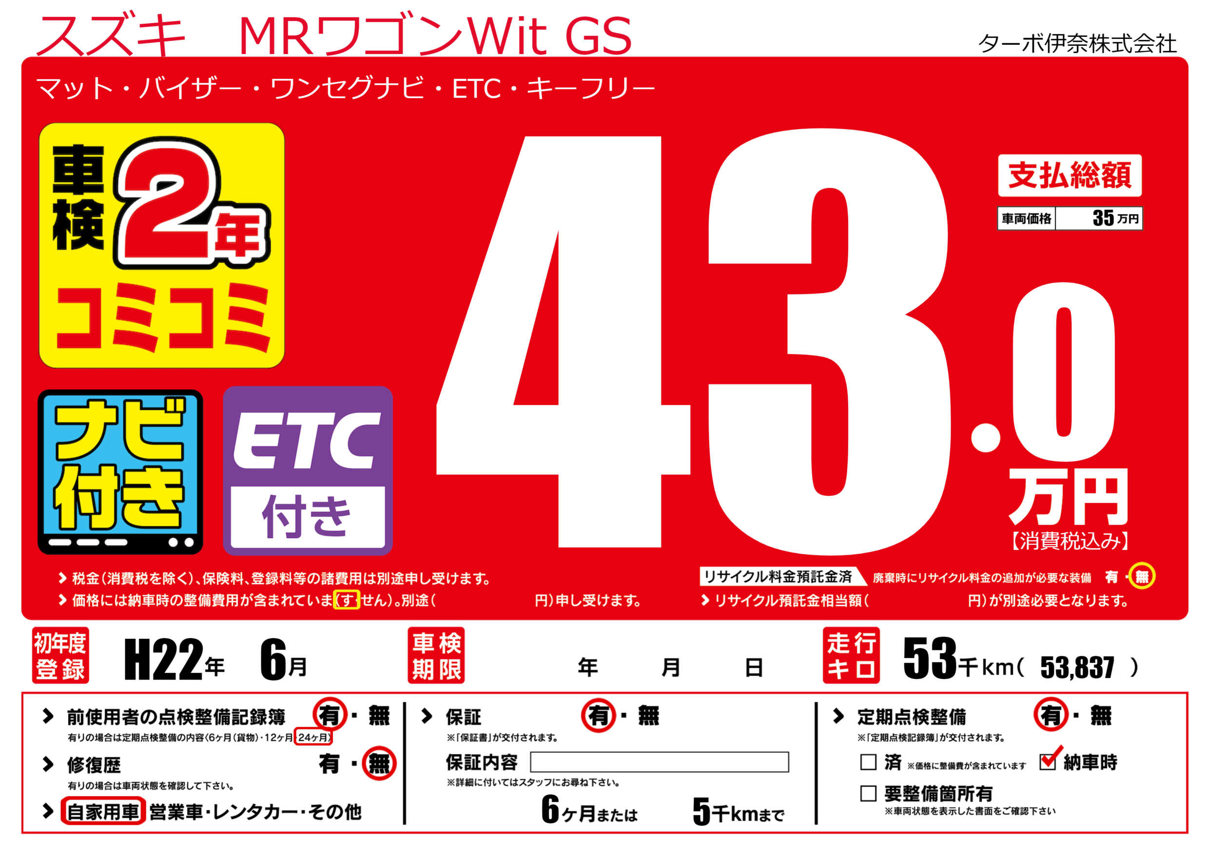 保証付き 保証内容(---) 6ヶ月または(5)千kmまで |