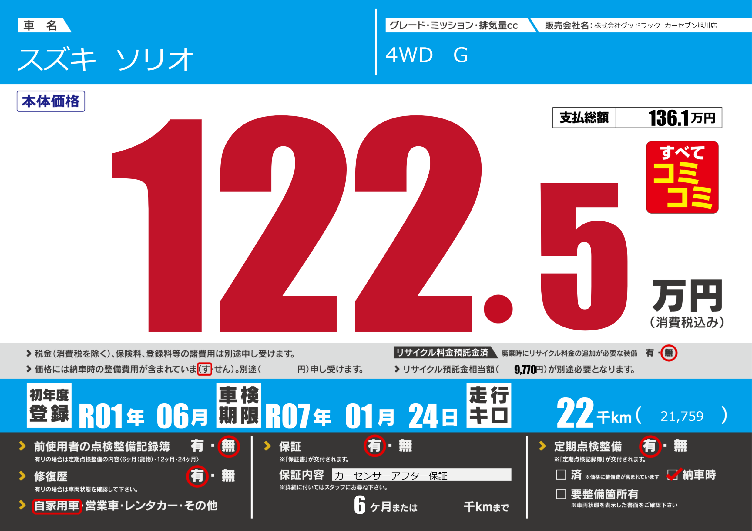 | 車名 | スズキ ソリオ | グレード ミッション 排気量 |