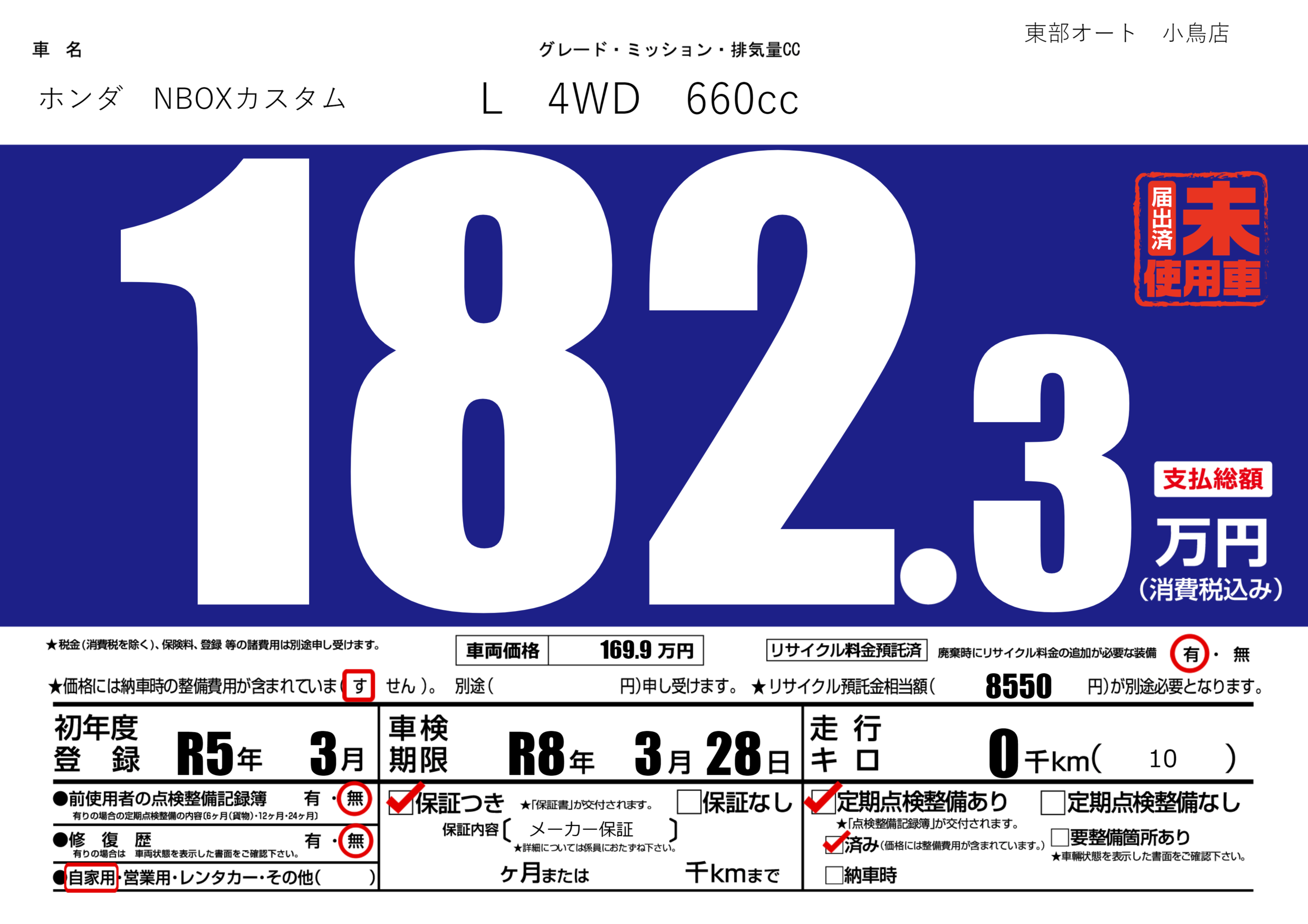 | 定期点検整備 | 定期点検整備あり 定期点検整備済み | ||