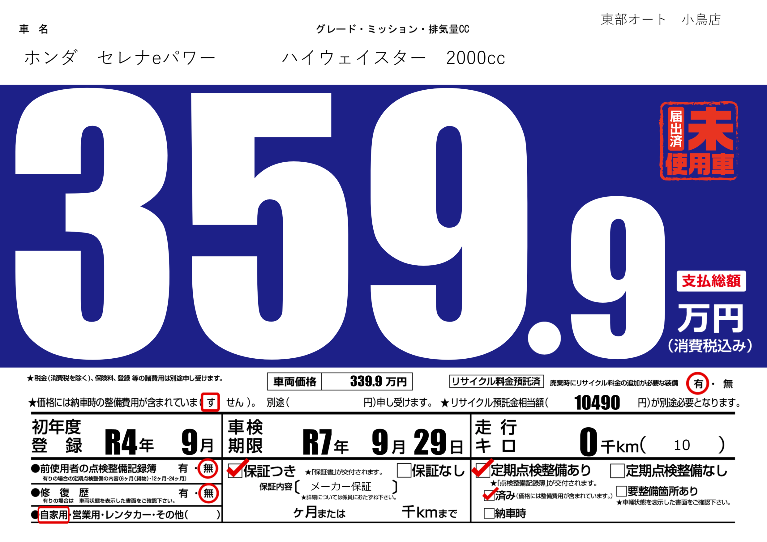 | 定期点検整備 | 定期点検整備あり 定期点検整備済み | ||