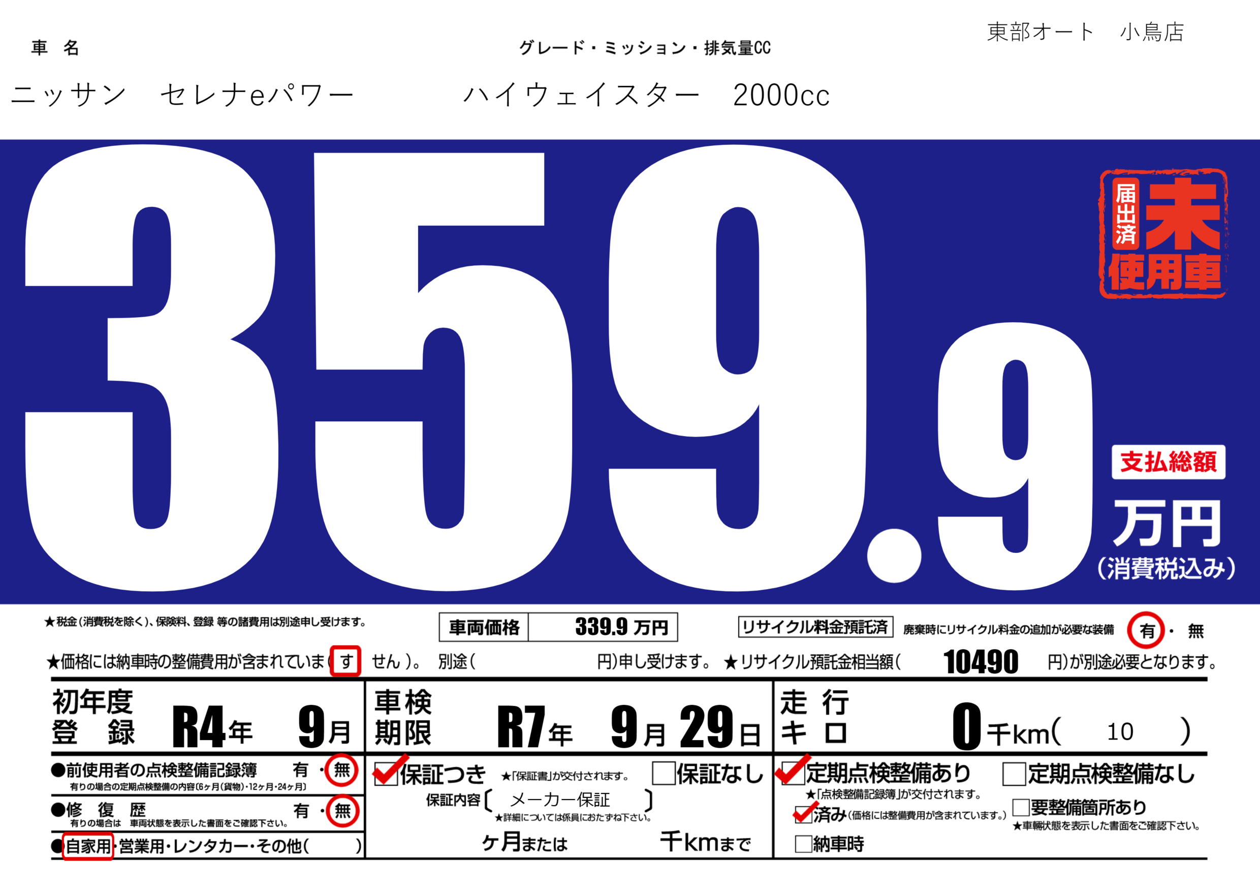 | 定期点検整備 | 定期点検整備あり 定期点検整備済み | ||
