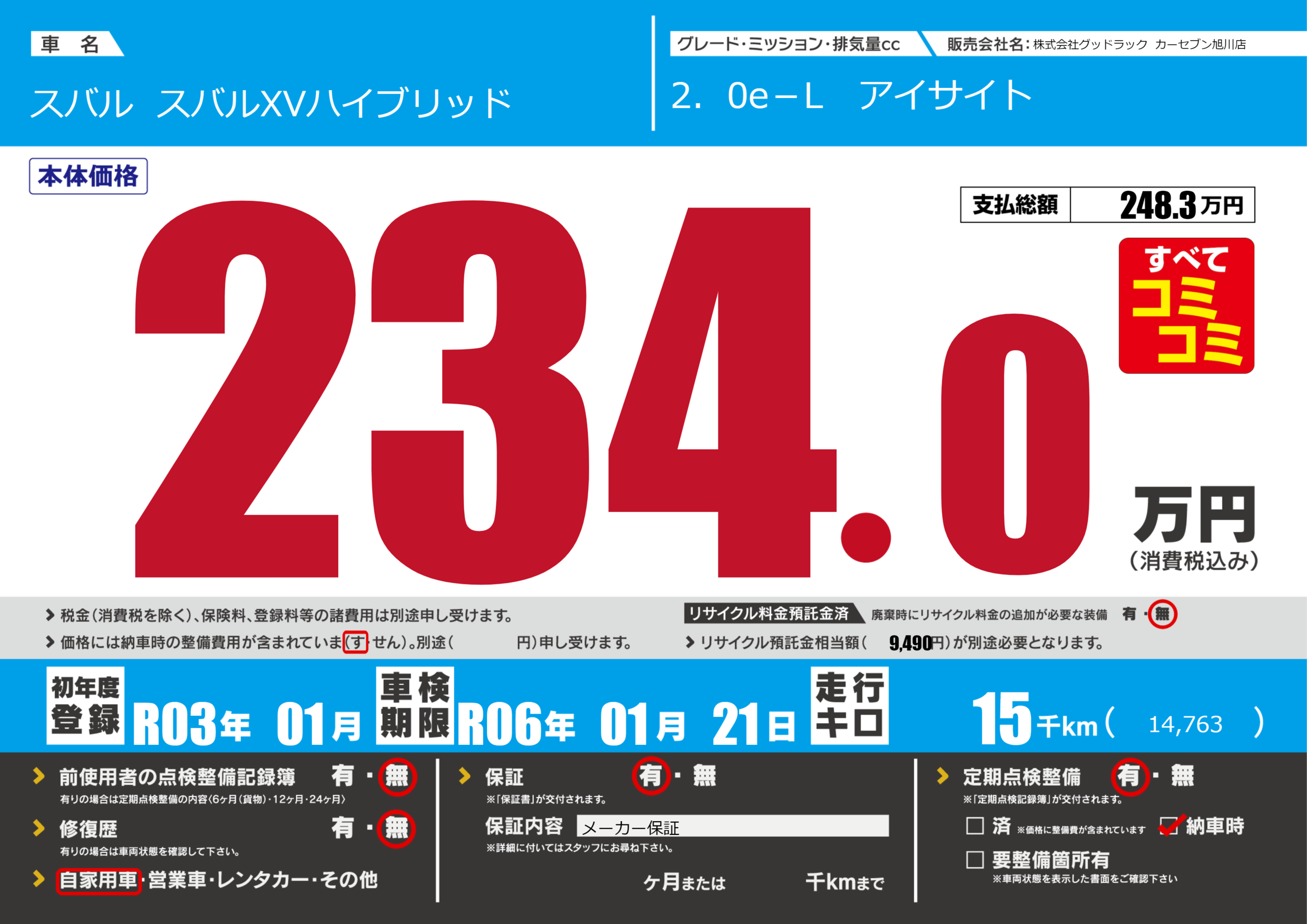 あり | 車検制限 | R06年01月21月 |