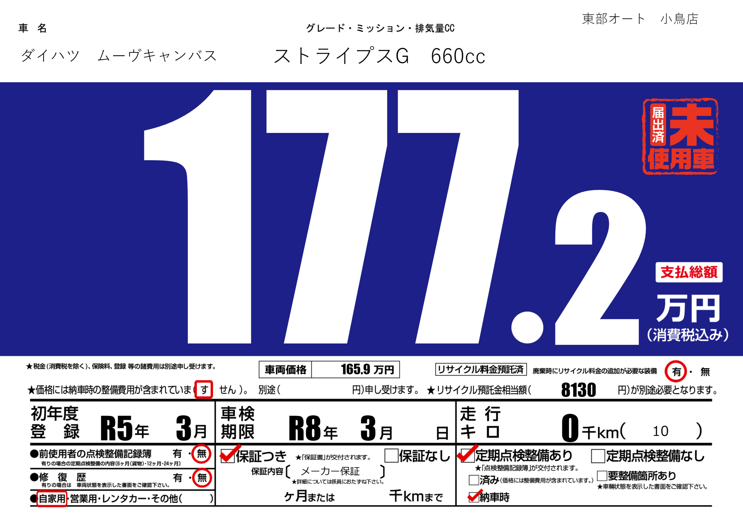 | 定期点検整備 | 定期点検整備あり 納車時あり | ||