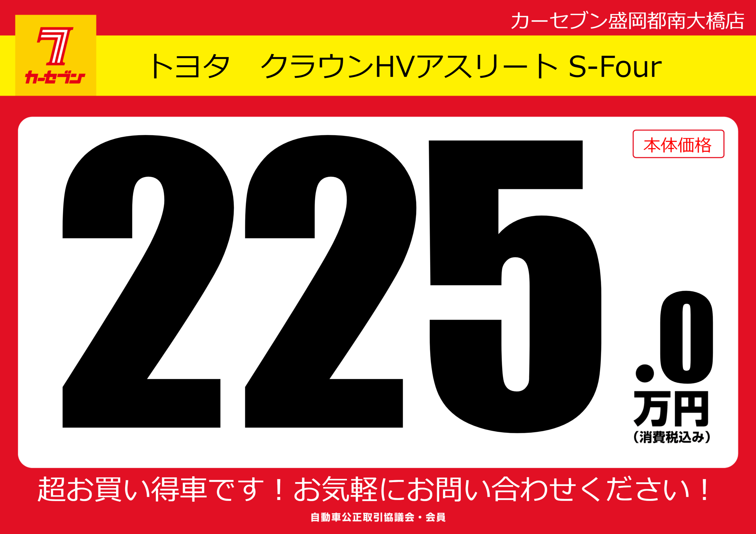 | 車名 | トヨタ クラウンHVアスリート S-Four | グレード ミッション 排気量 |