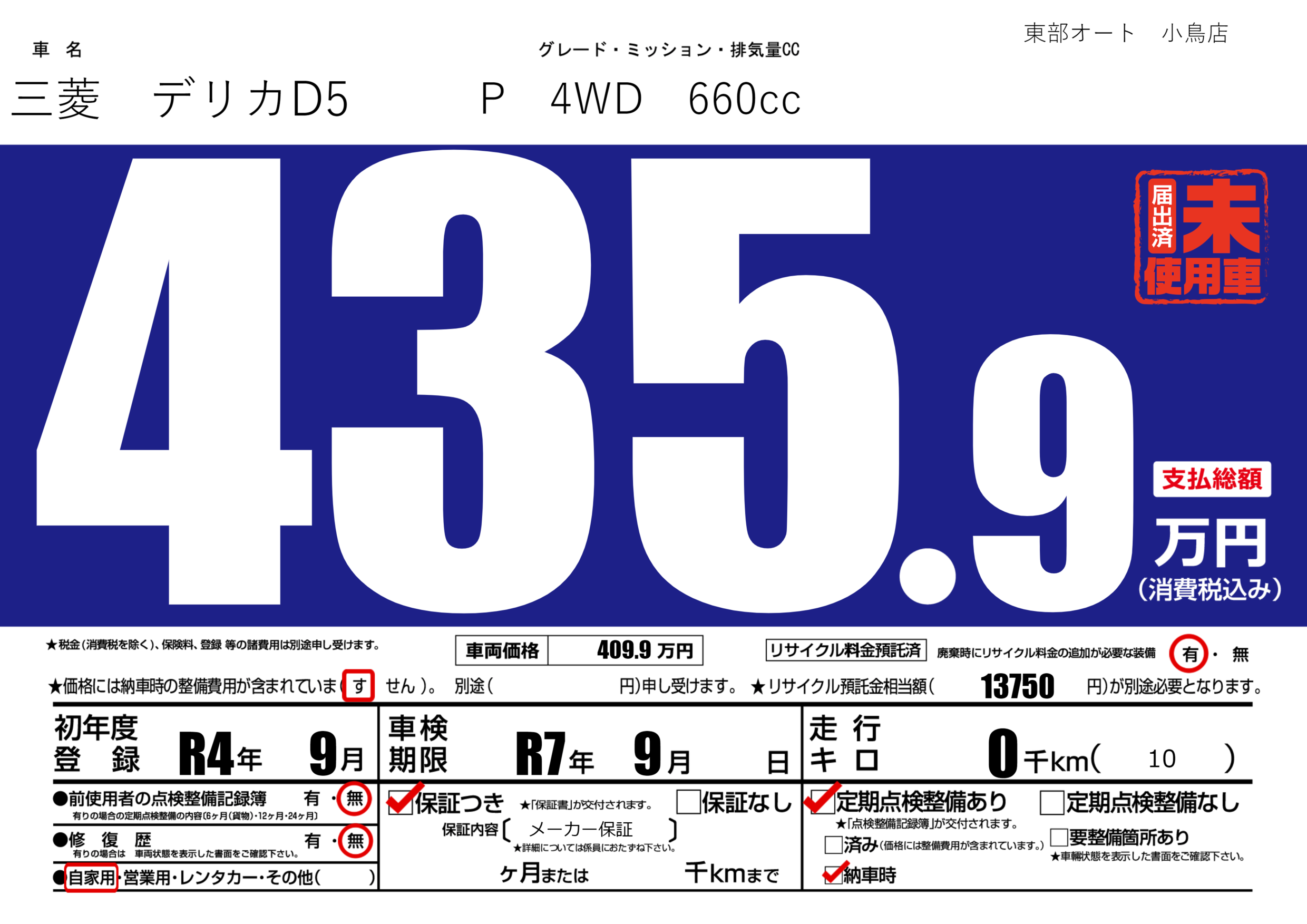 | 車名 | 三菱 デリカD5 | グレード ミッション 排気量 |
