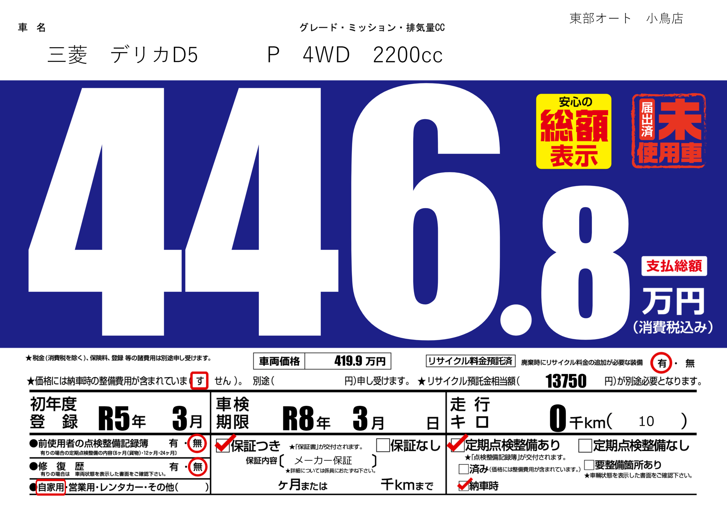 | 車検制限 | R8年 3月 - 日 | ||