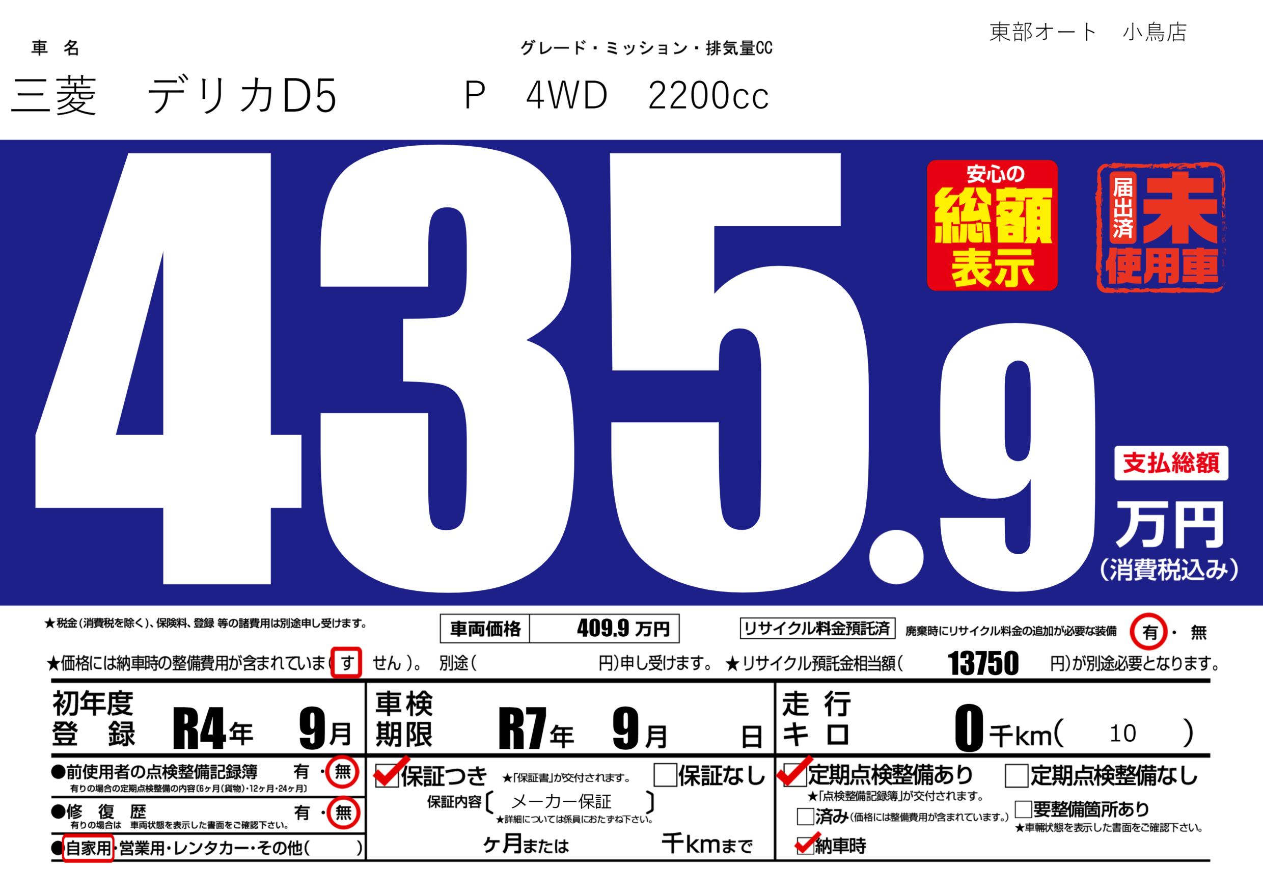 | 車名 | 三菱 デリカD5 | グレード ミッション 排気量 |
