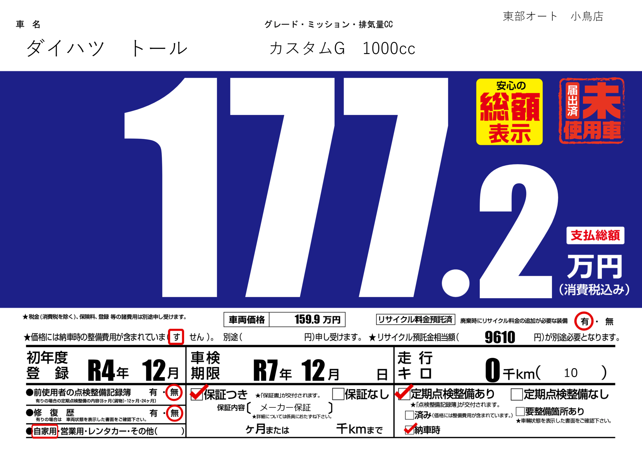 | 車検制限 | R7年 12月 - 日 | ||