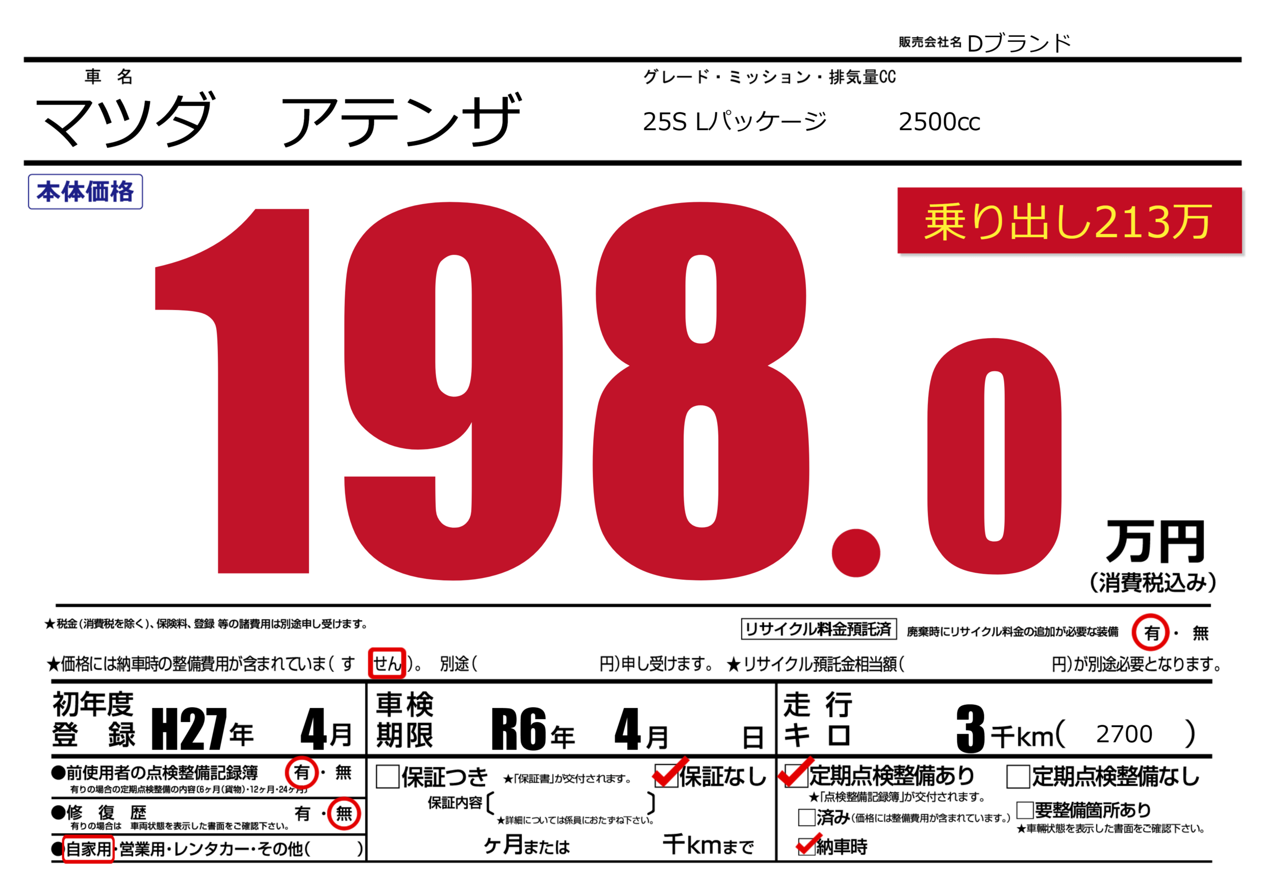 なし | 車検制限 | R6年4月---月 |