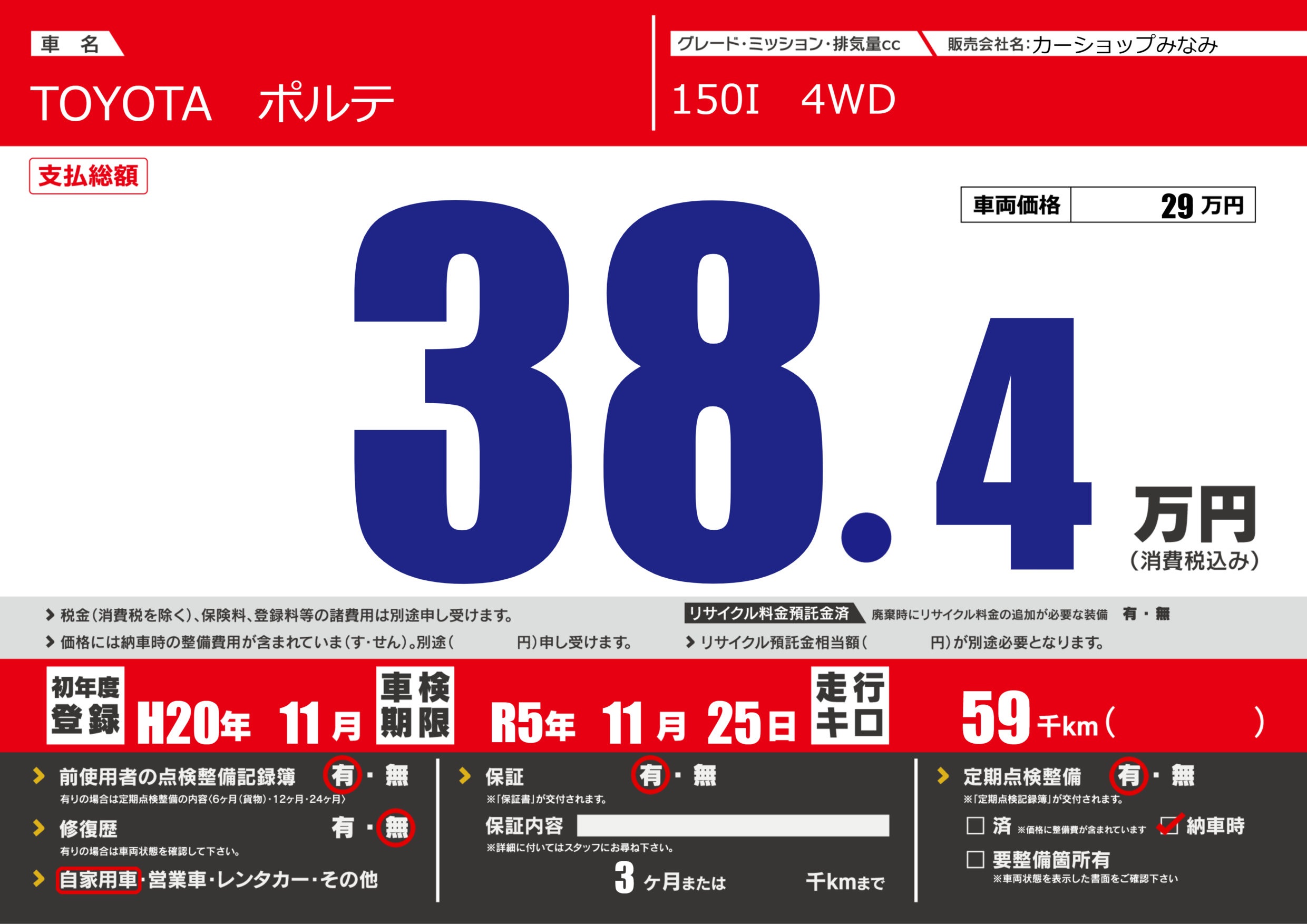 なし | 車検制限 | R5年11月25月 |