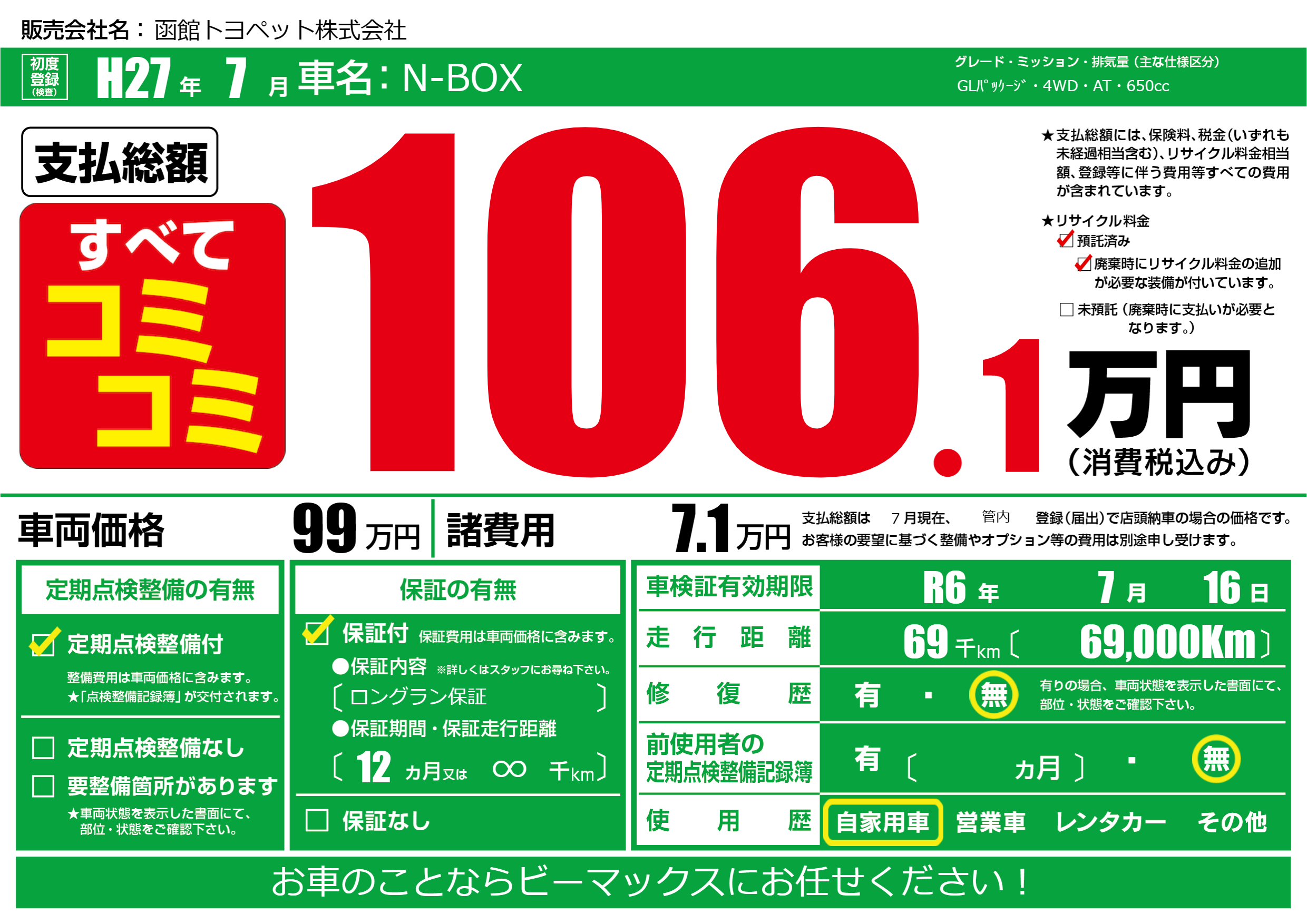 | 定期点検整備 | 定期点検整備あり | ||