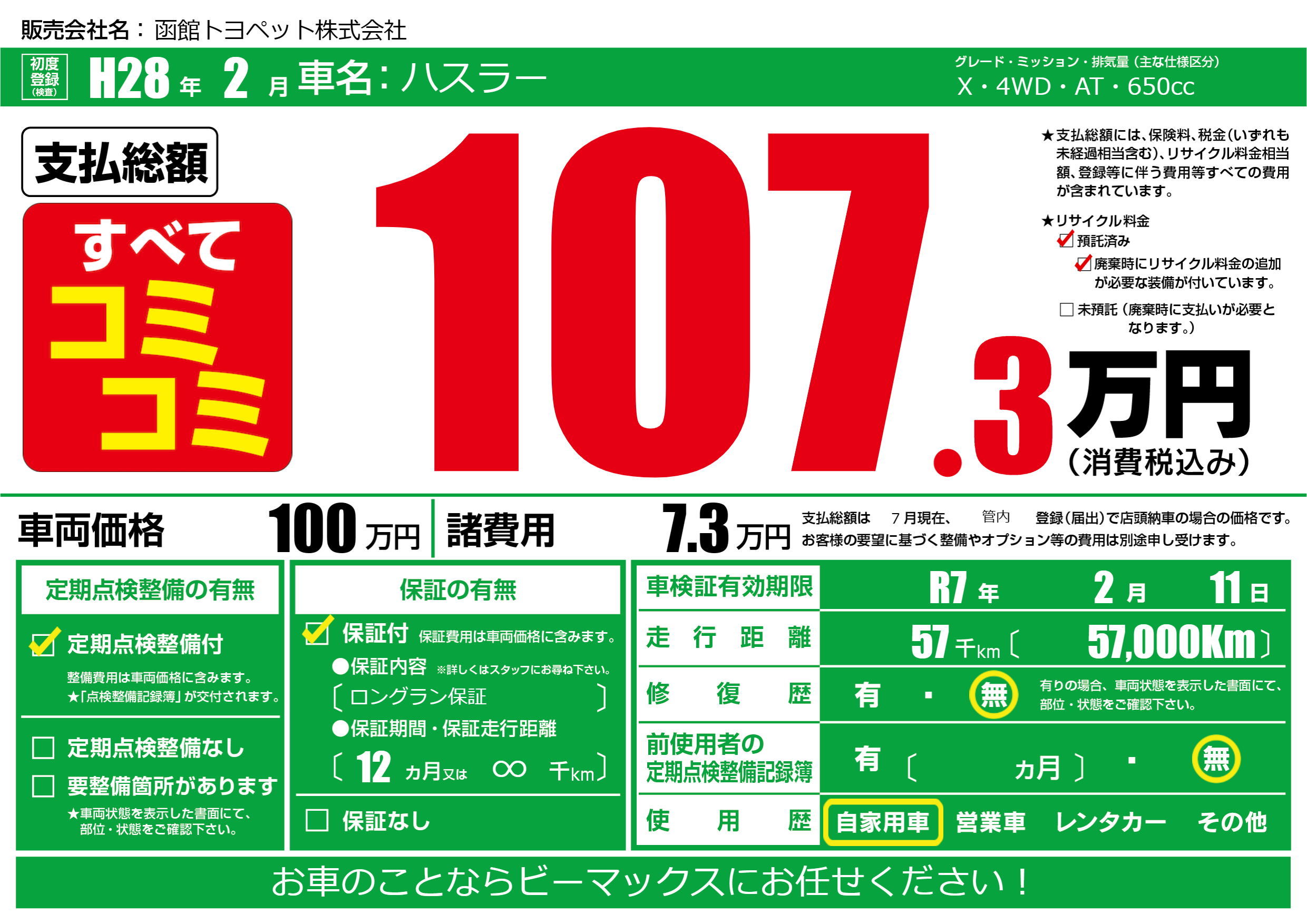 | 定期点検整備 | 定期点検整備あり | ||