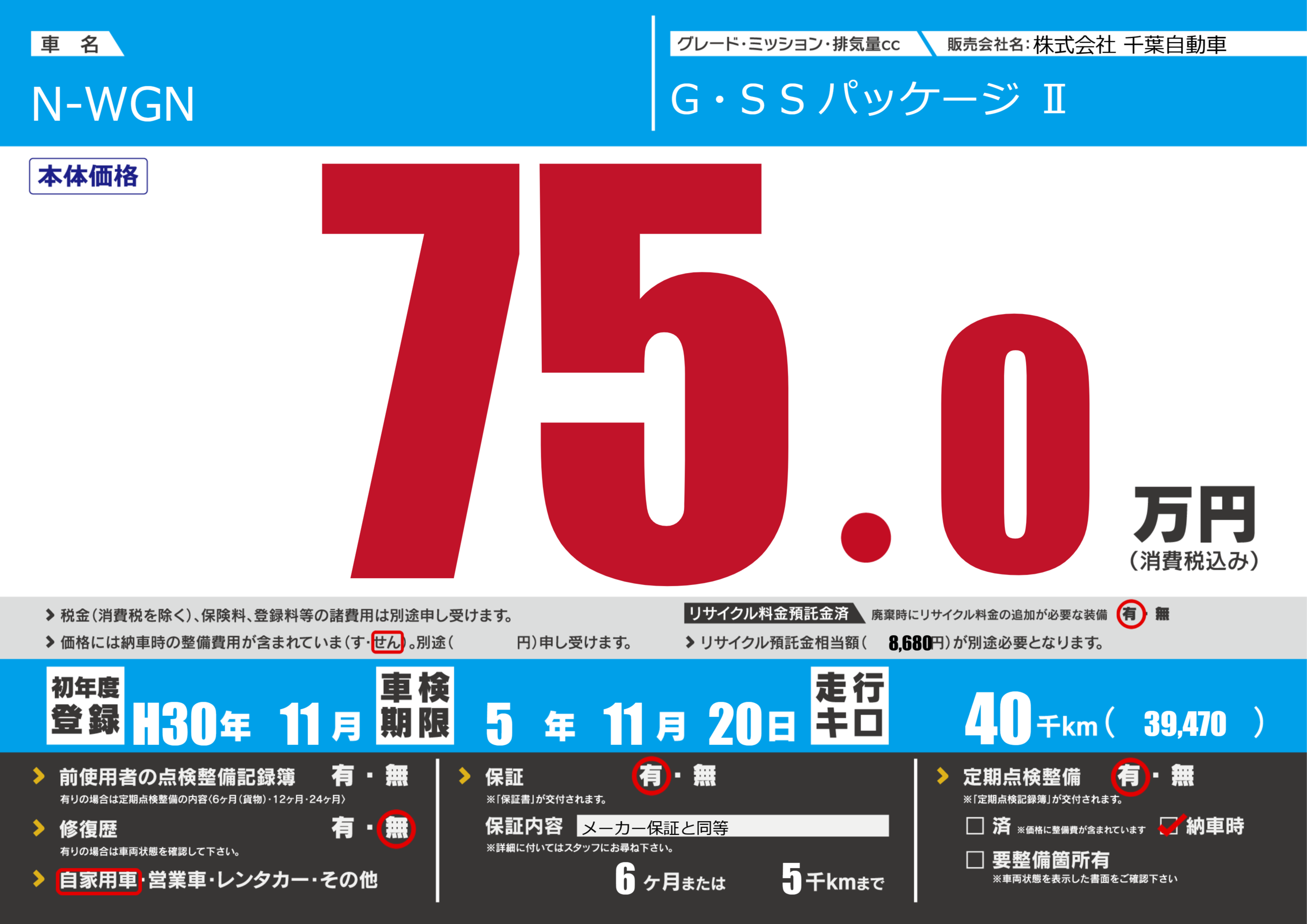 | 車名 | N-WGN | グレード ミッション 排気量 |