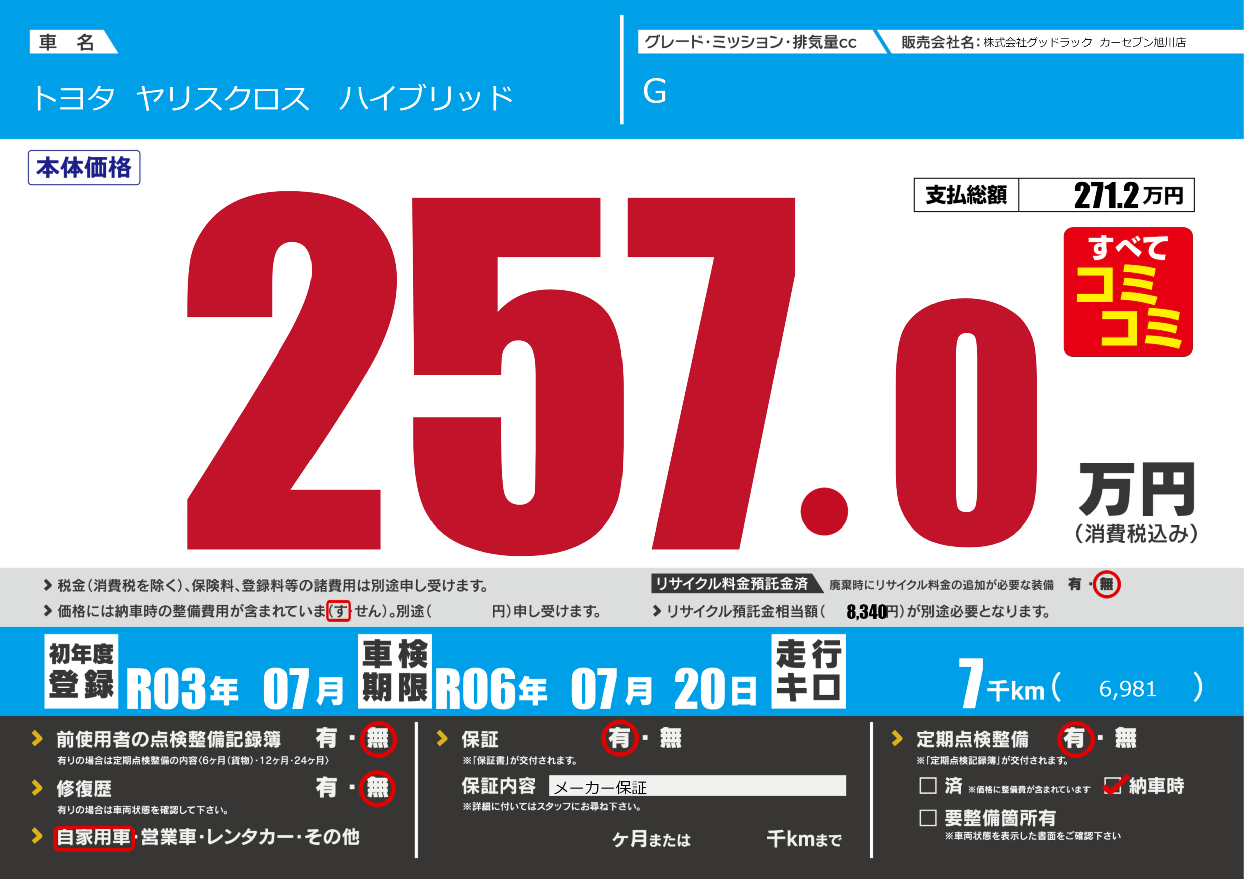 あり | 車検制限 | R06年07月20月 |