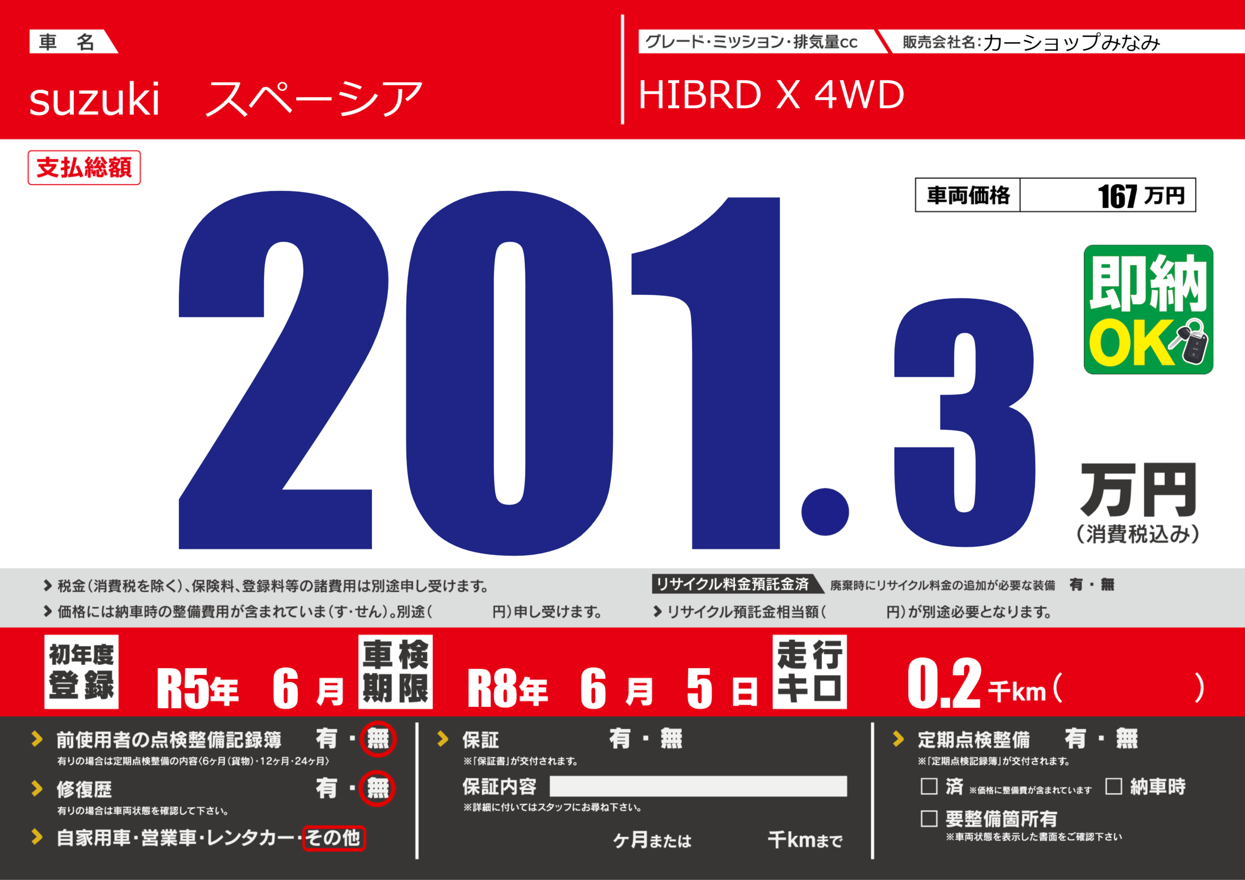 なし | 車検制限 | R8年6月5月 |