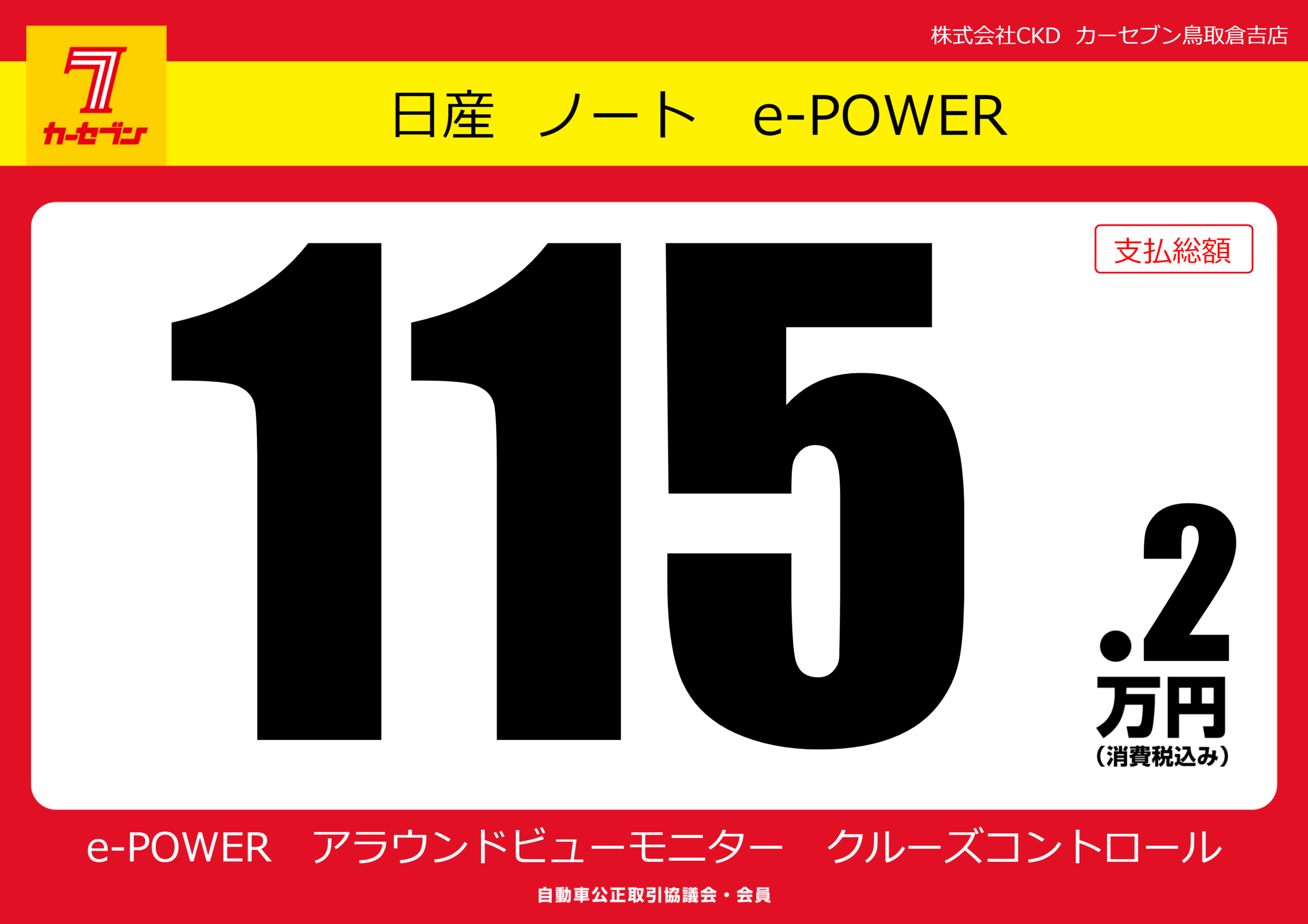 | 車名 | 日産 ノート e-POWER | グレード ミッション 排気量 |