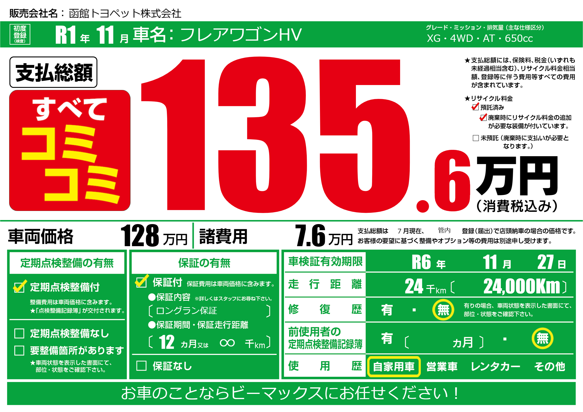 | 車検制限 | R6年 11月 27日 | ||