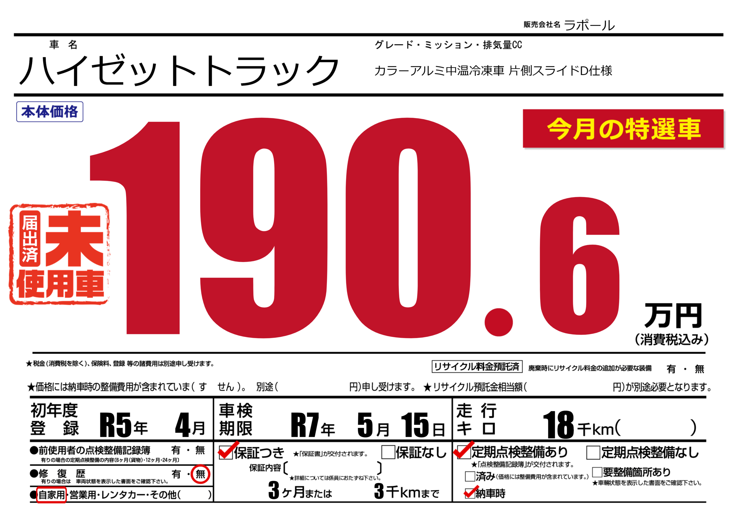 | 走行キロ | 1.8万km | 初年度登録 | R5年4月 |