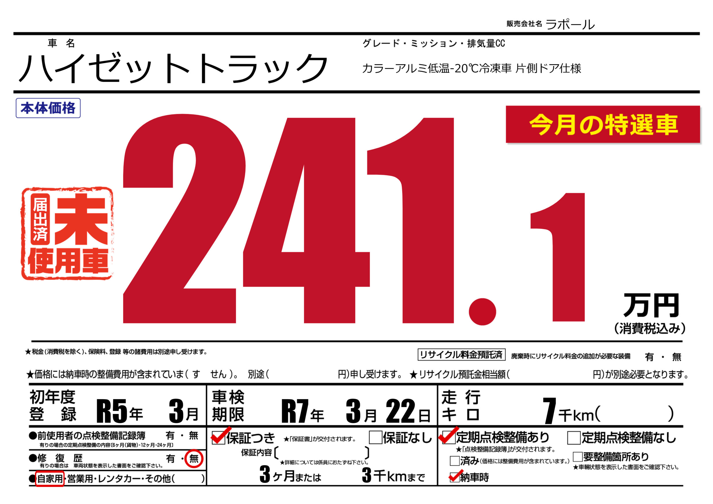 | 走行キロ | 0.7万km | 初年度登録 | R5年3月 |