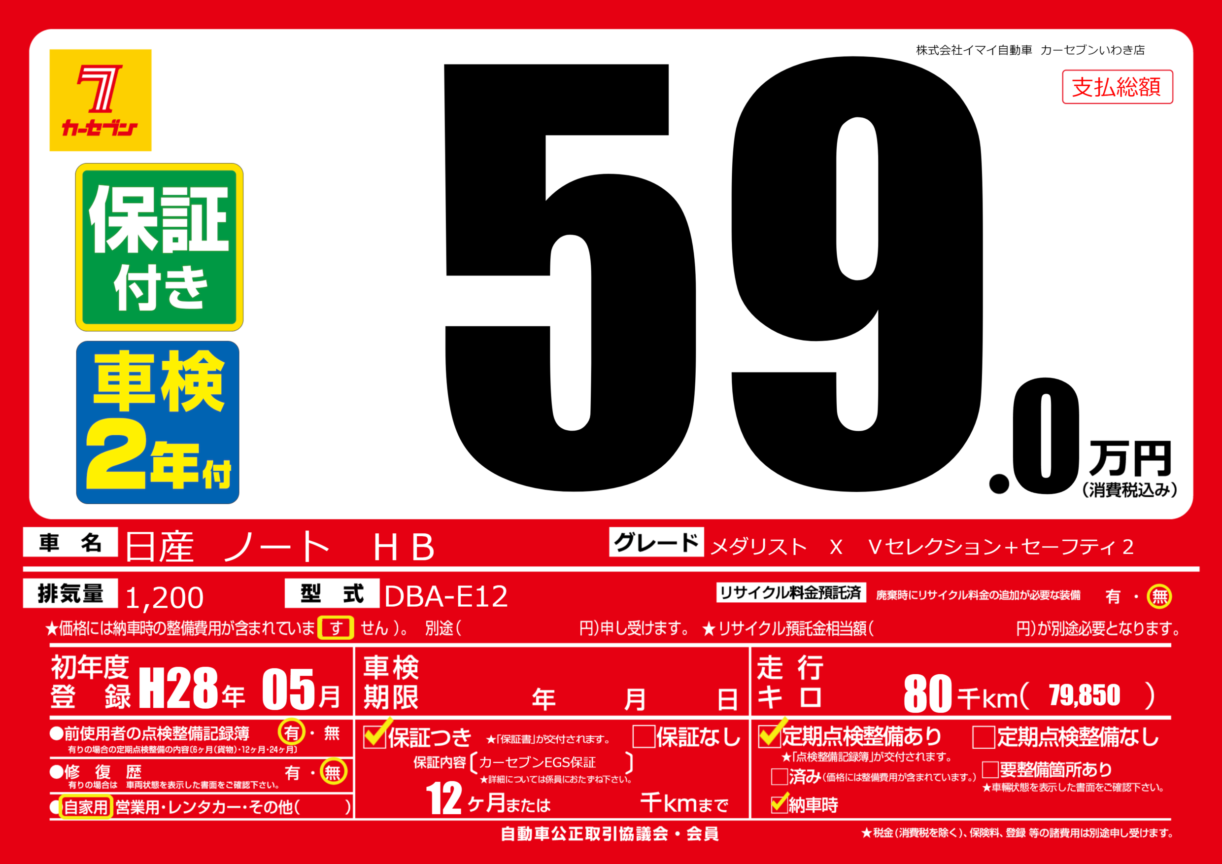 保証内容(カーセブンEGS保証) 12ヶ月または千km