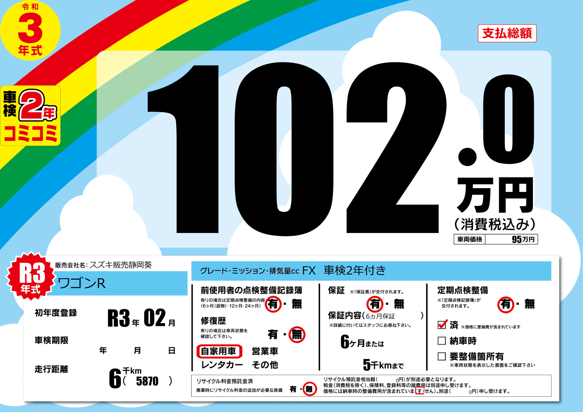 | 定期点検整備 | 定期点検整備あり 定期点検整備済み | ||