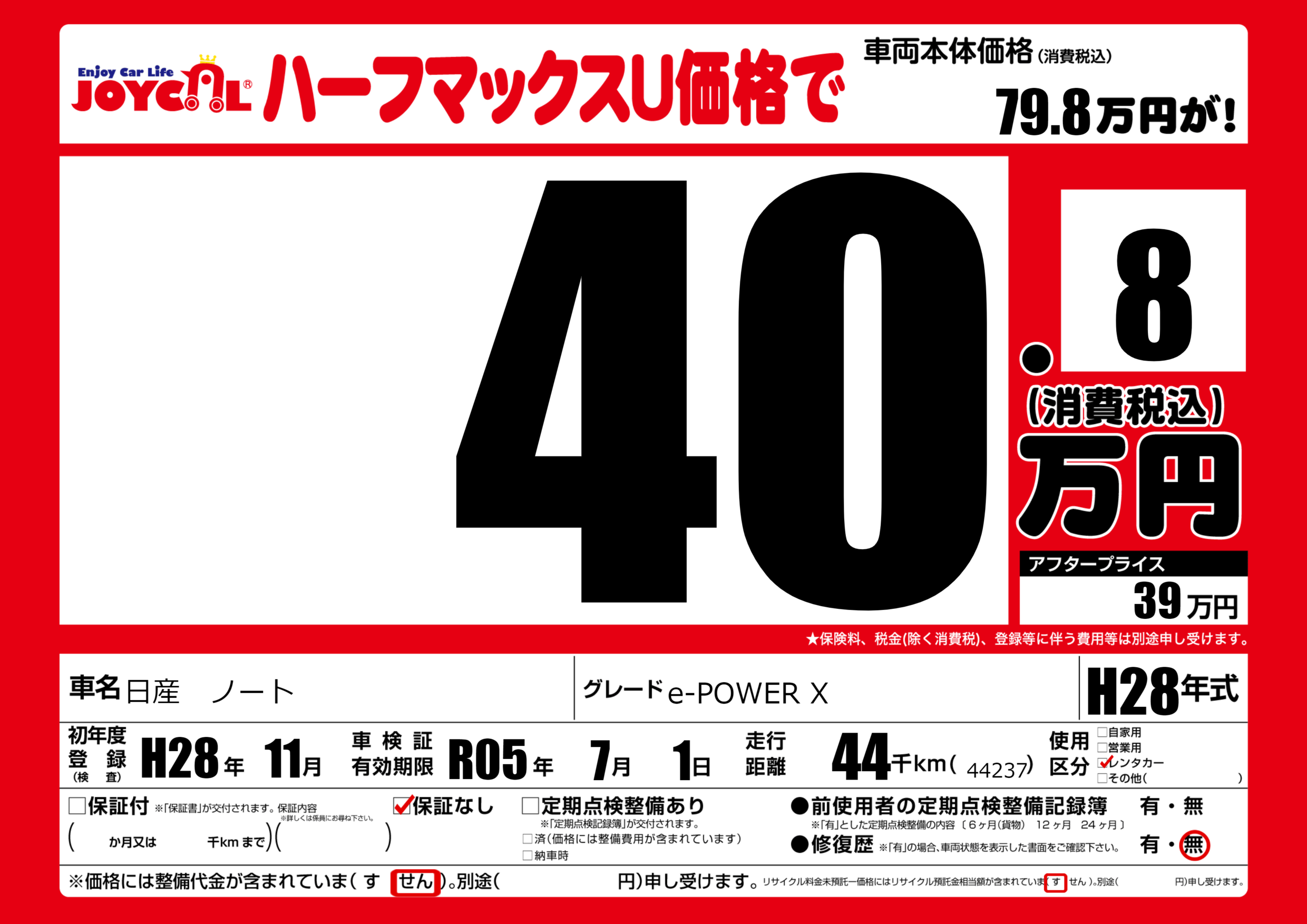 なし | 車検制限 | R05年7月1月 |