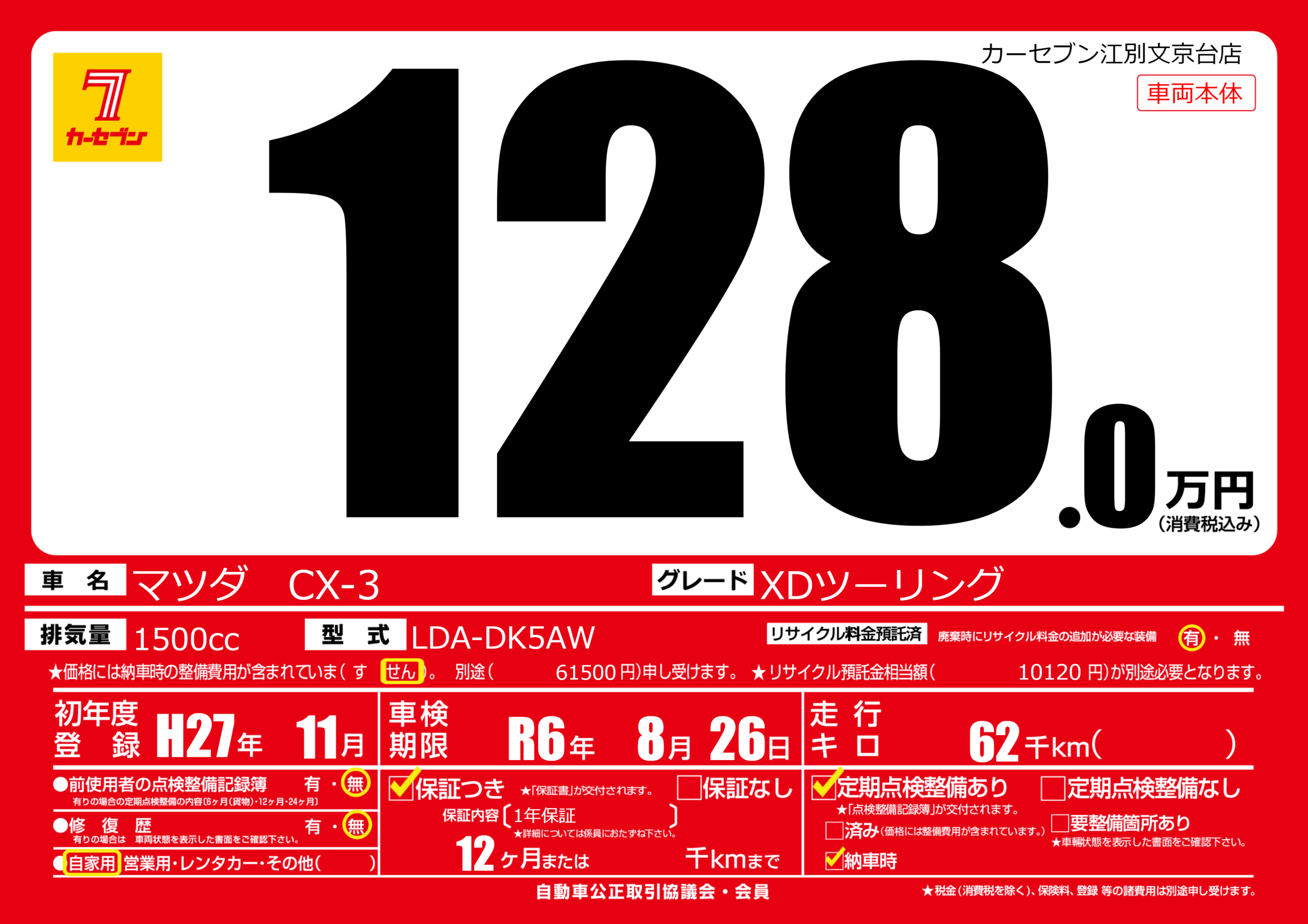 車検制限 | R6年8月26月 |