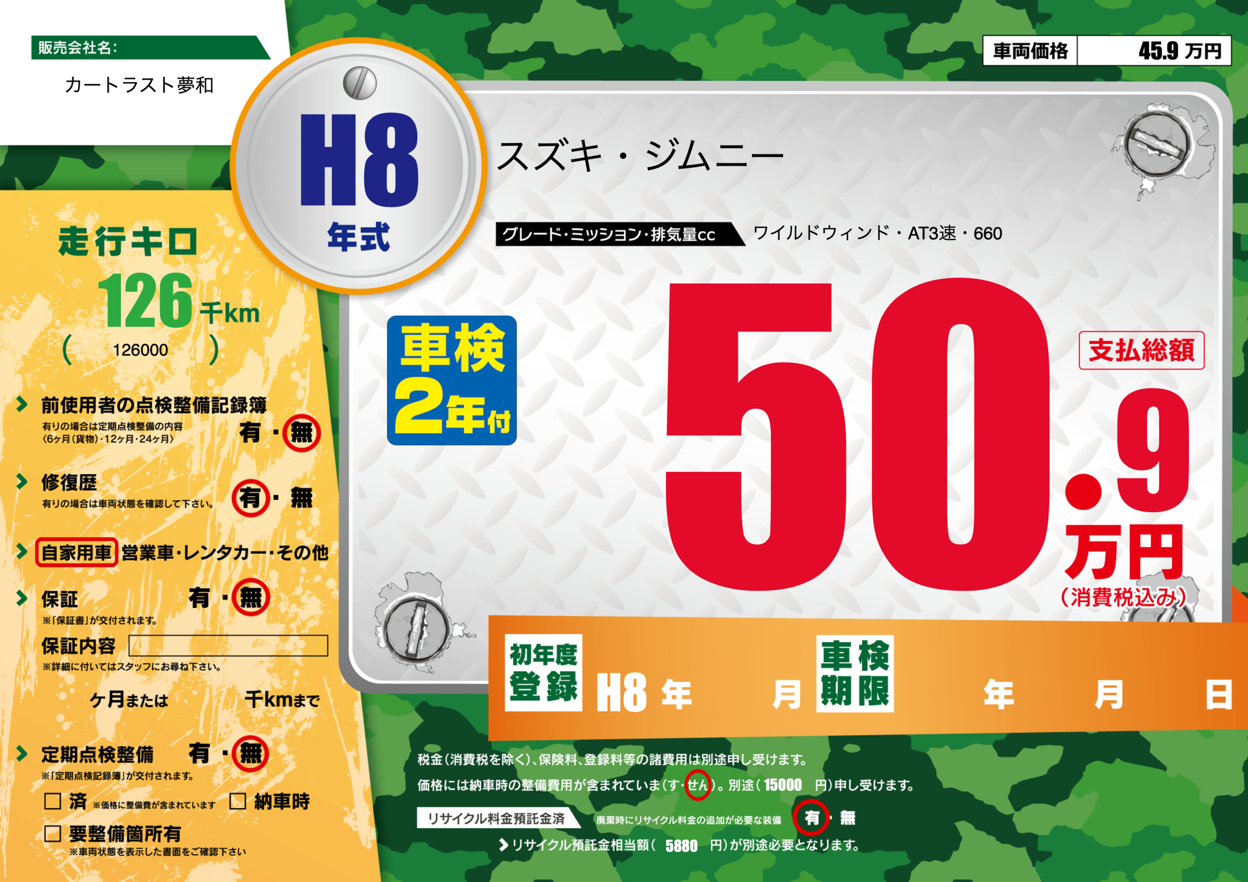 | 車検制限 | - 年 - 月 - 日 | ||