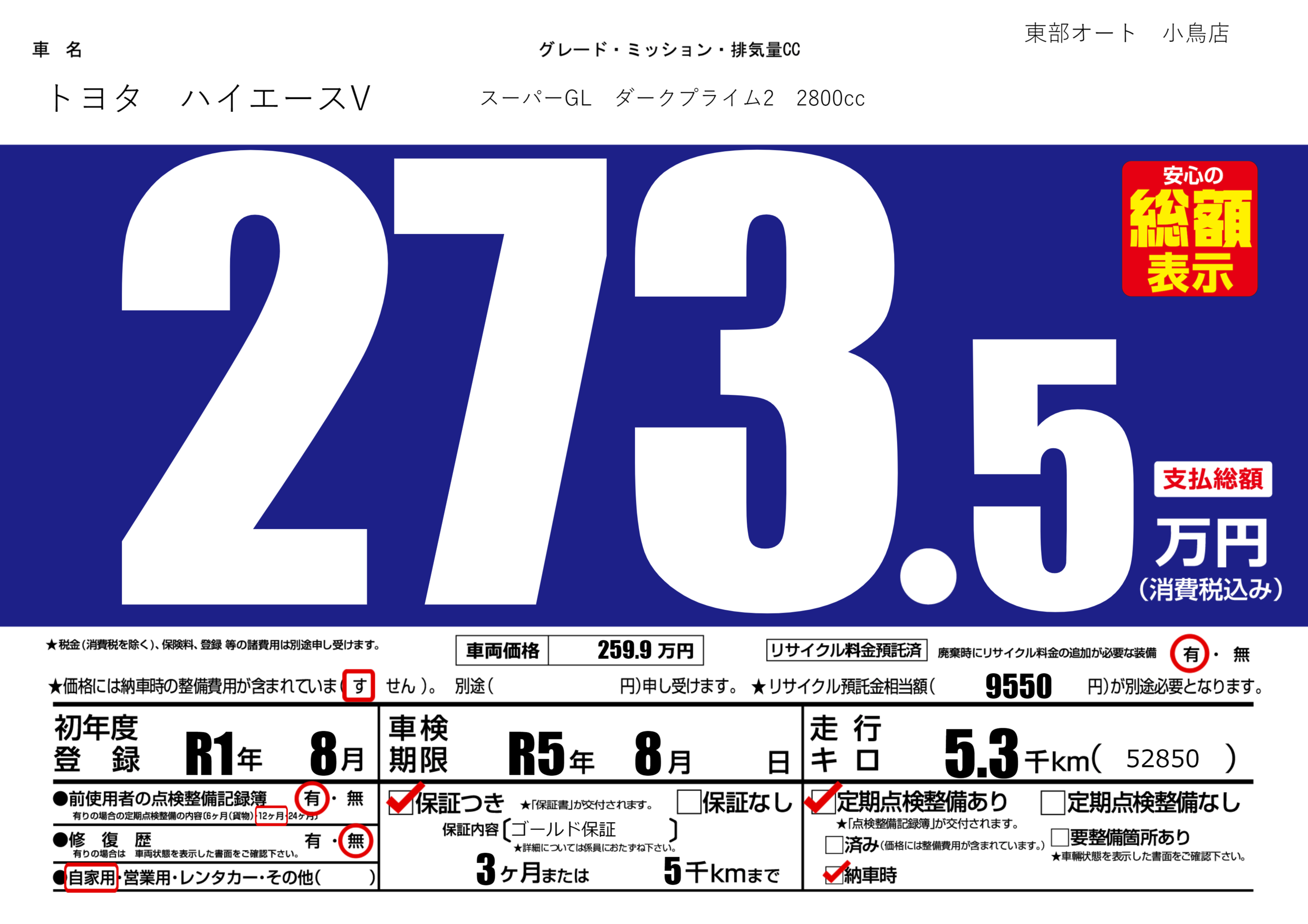 保証付き 保証内容(ゴールド保証) 3ヶ月または(5)千kmまで |