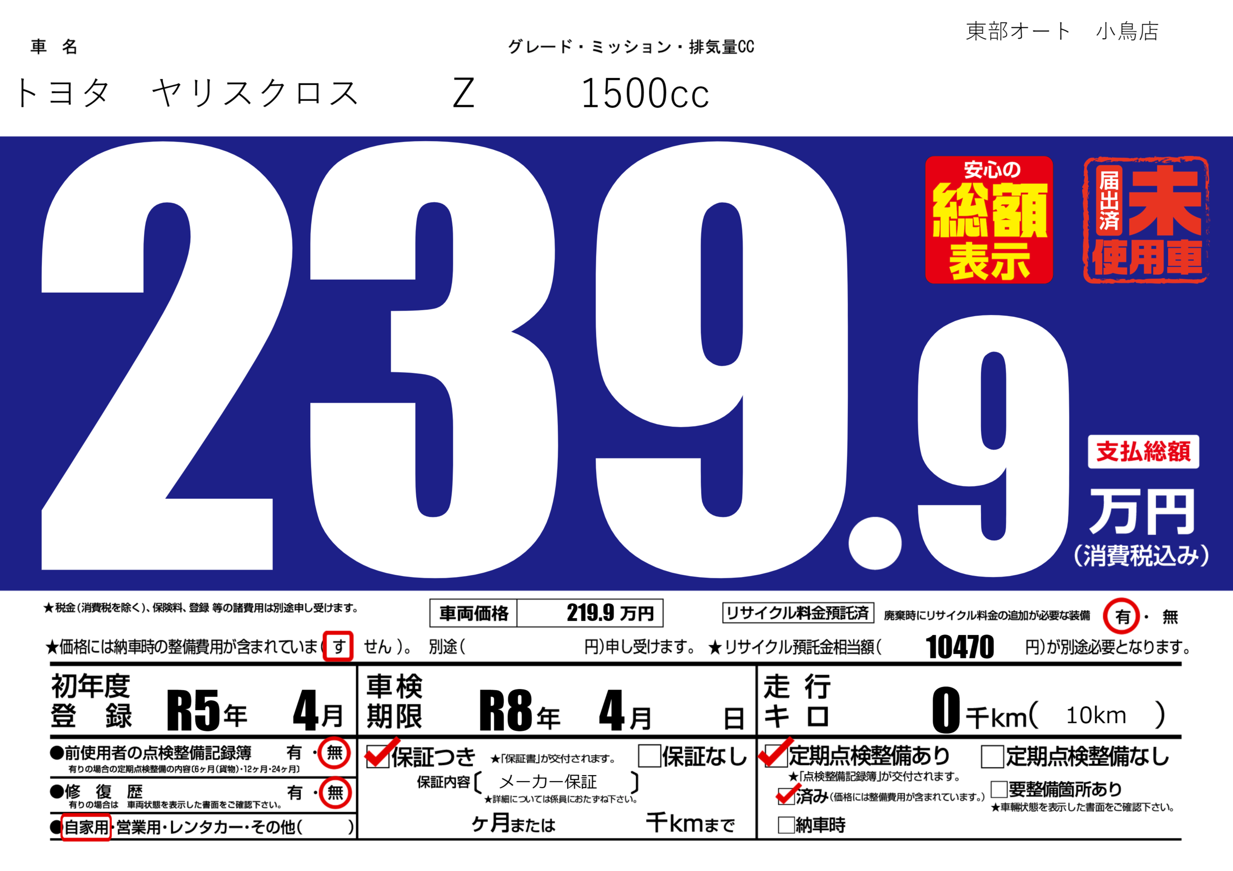 | 定期点検整備 | 定期点検整備あり 定期点検整備済み | ||