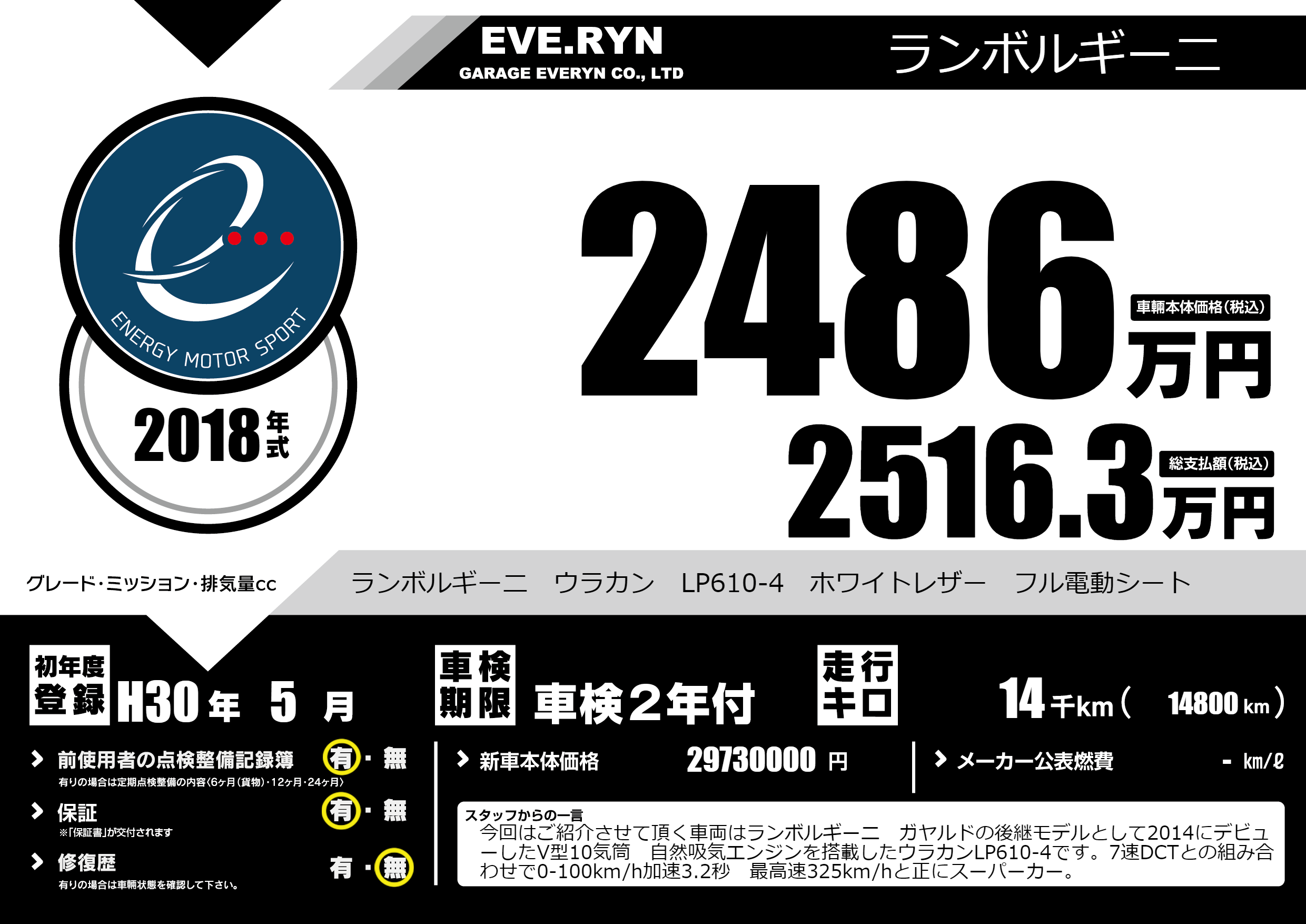 | 車名 | ランボルギーニ | グレード ミッション 排気量 |