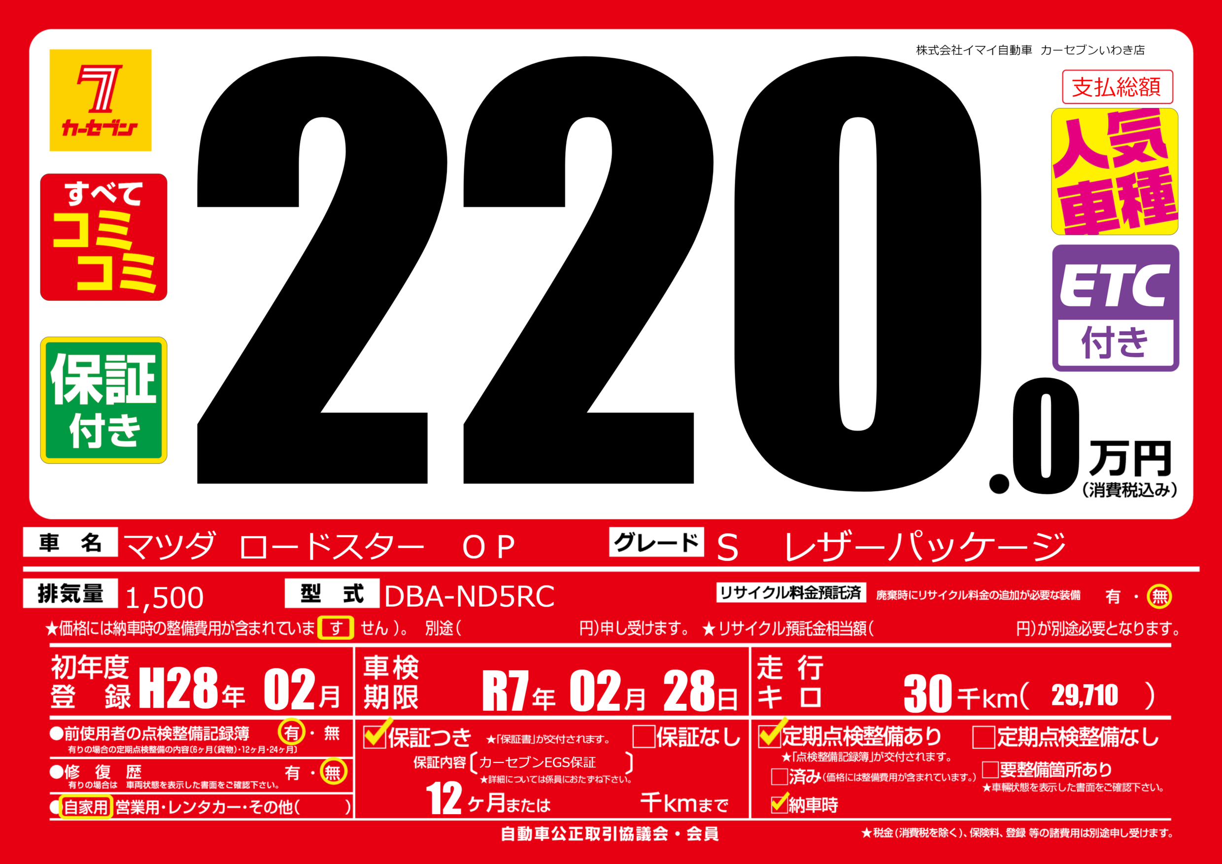 | 車検制限 | R7年 02月 28日 | ||