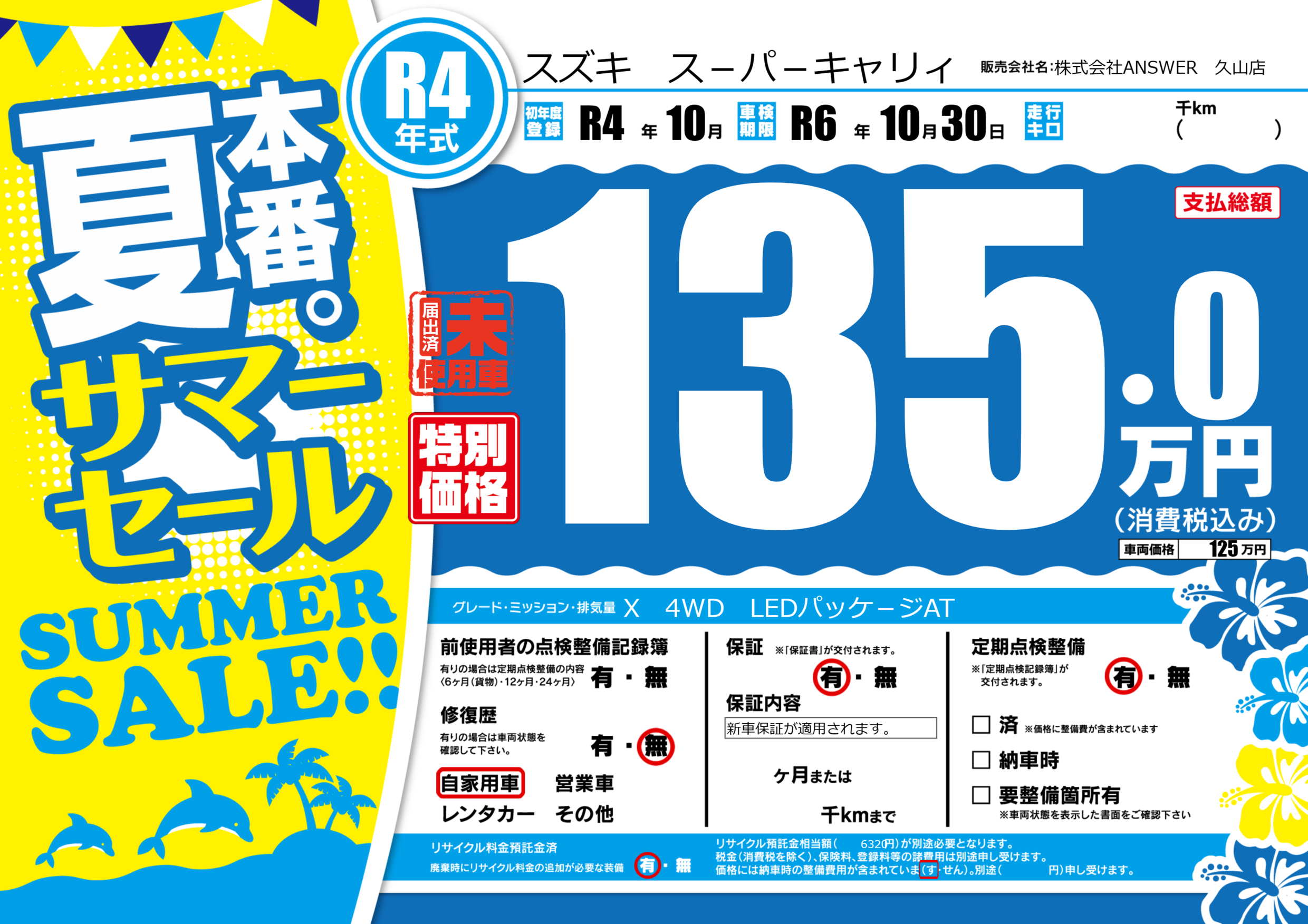 | 初年度登録 | R4年10月 | ||