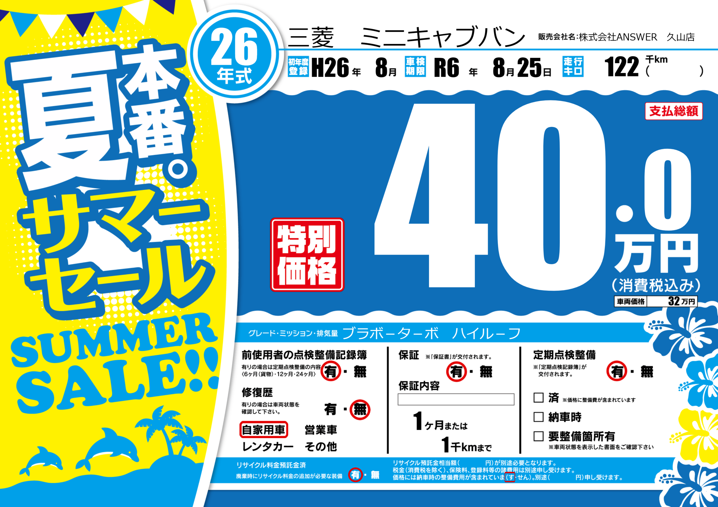 | 初年度登録 | H26年8月 | ||
