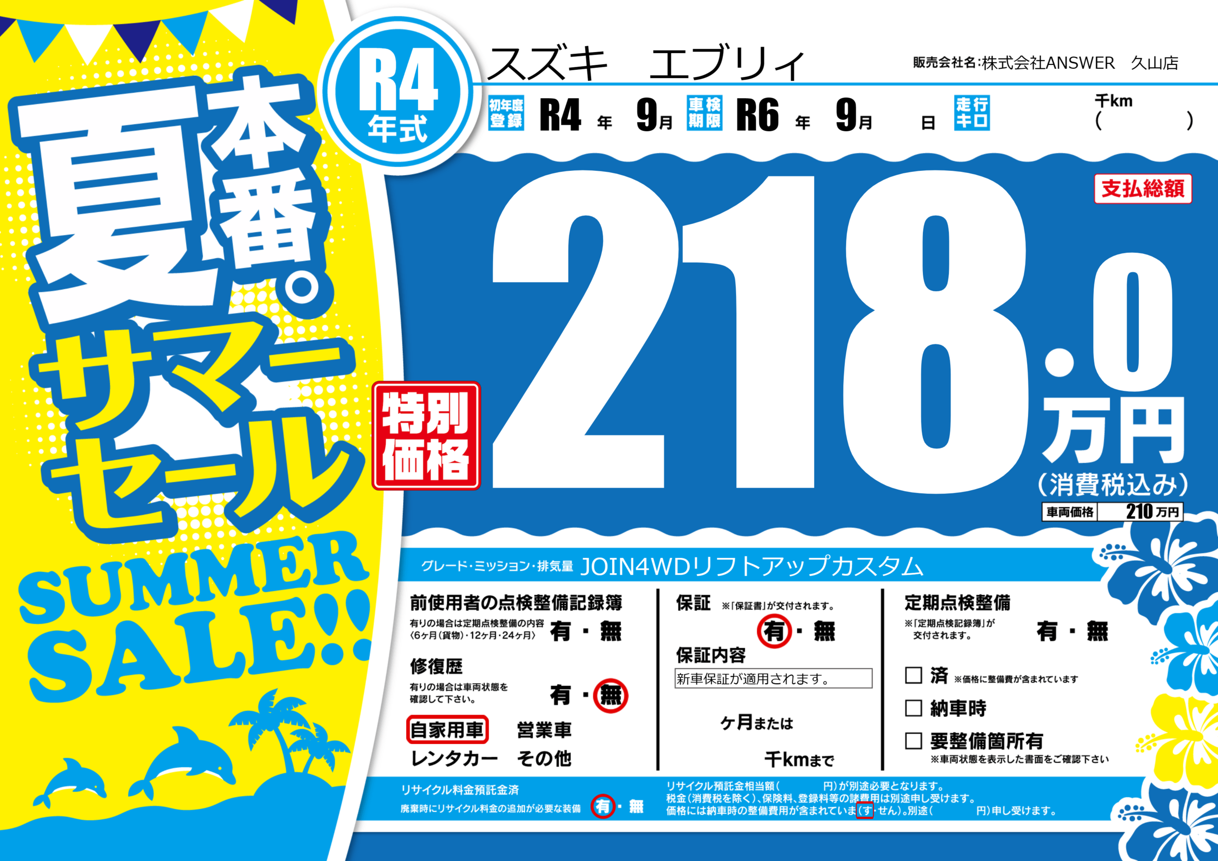 | 車検制限 | R6年 9月 - 日 | ||